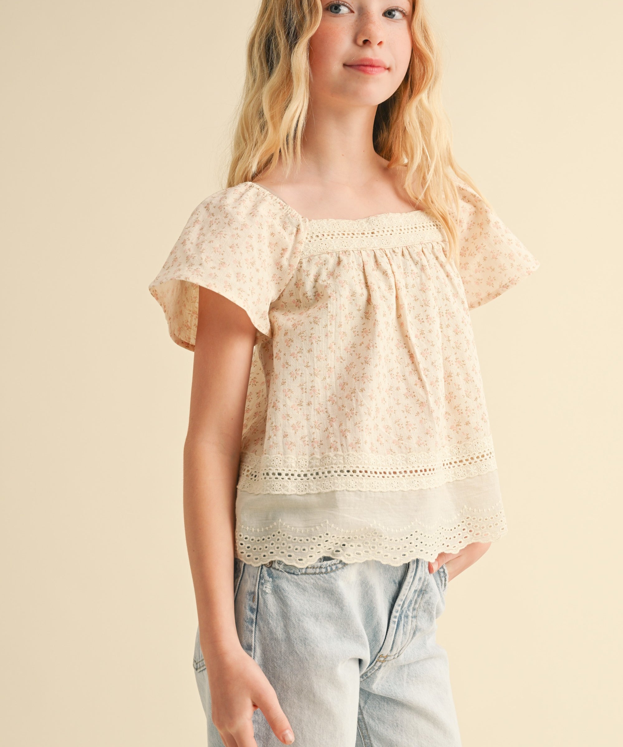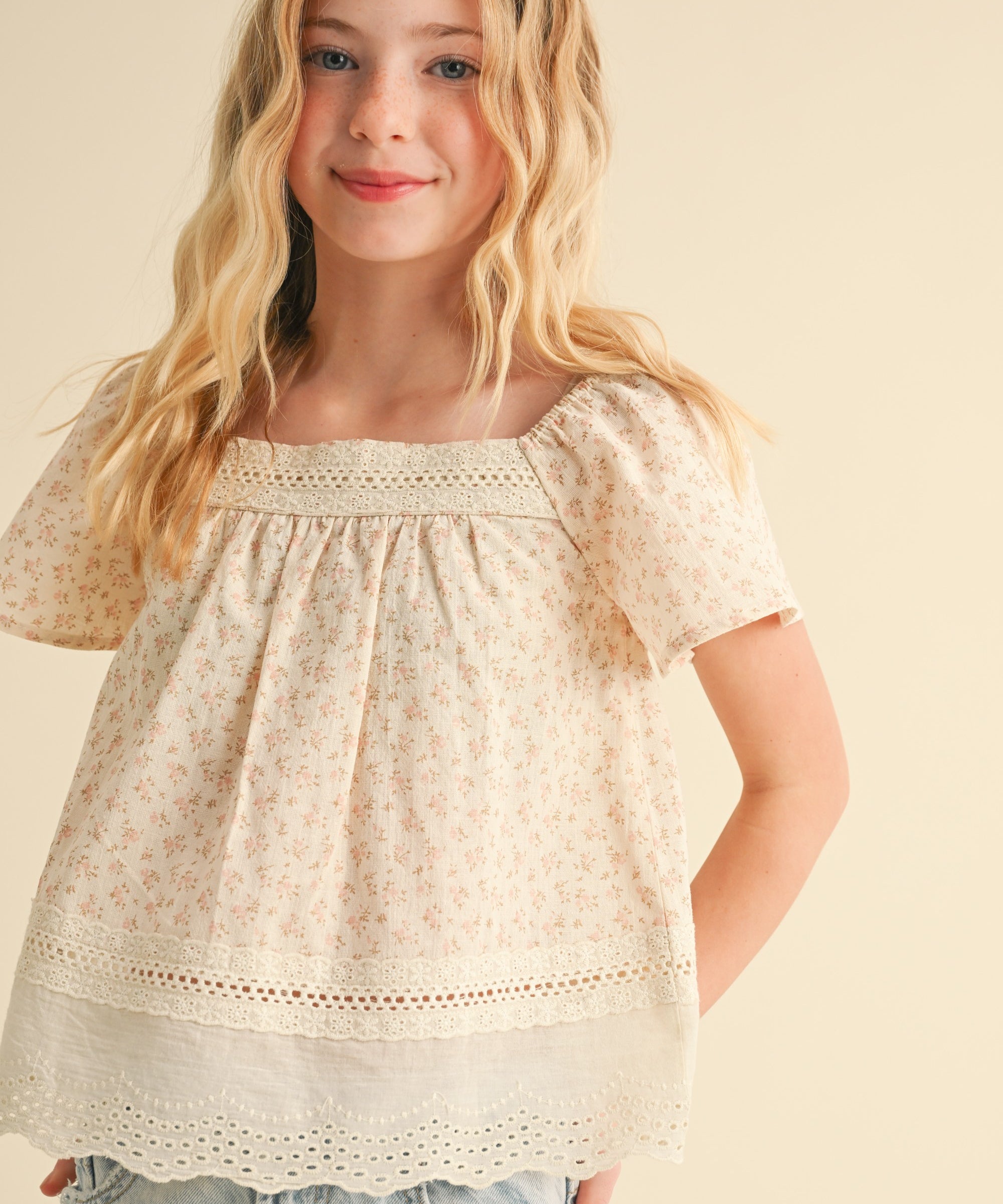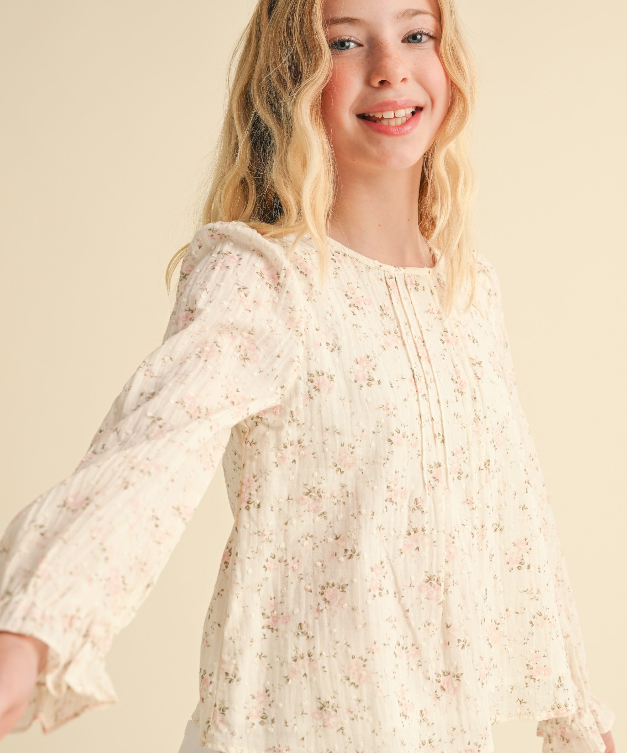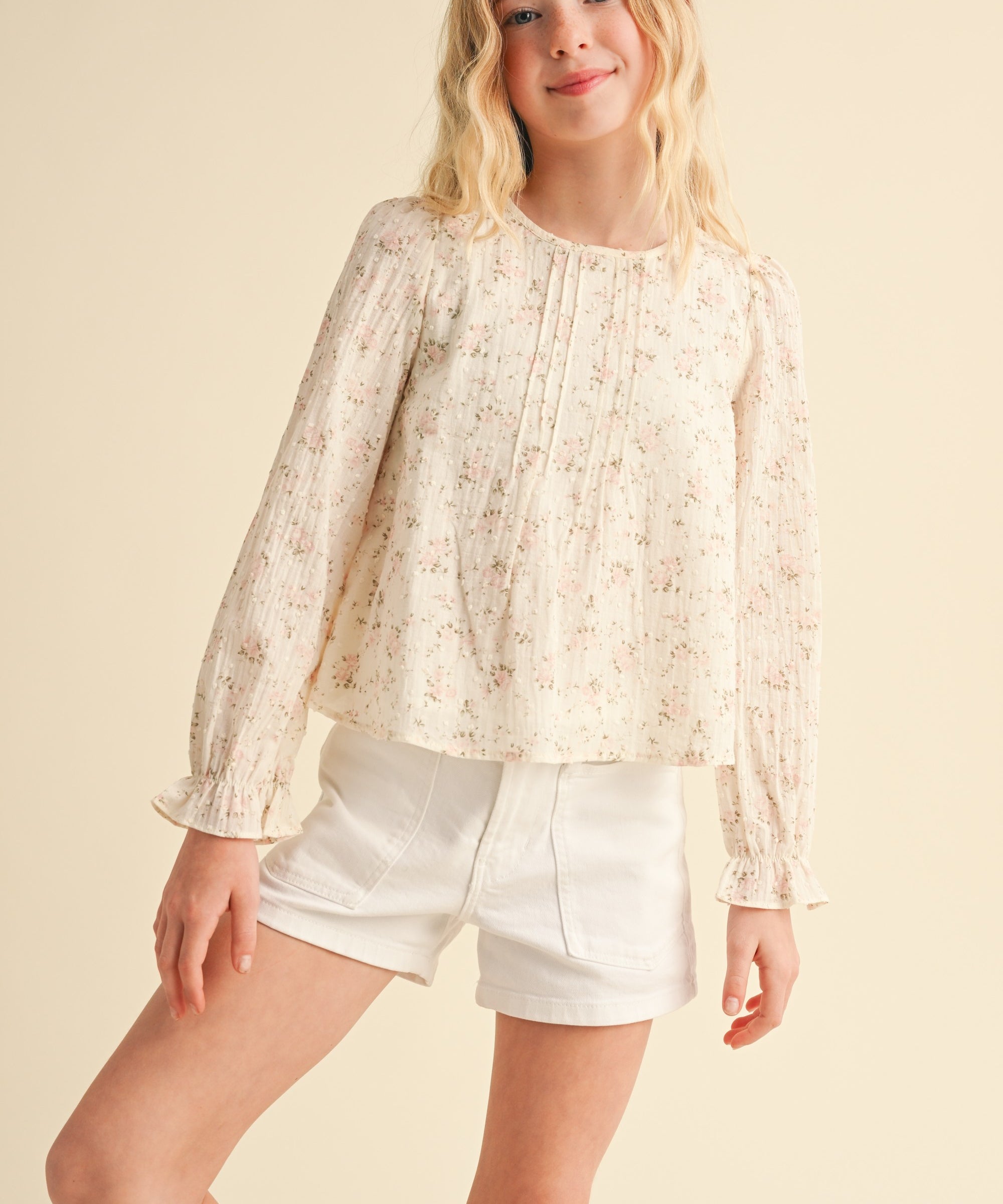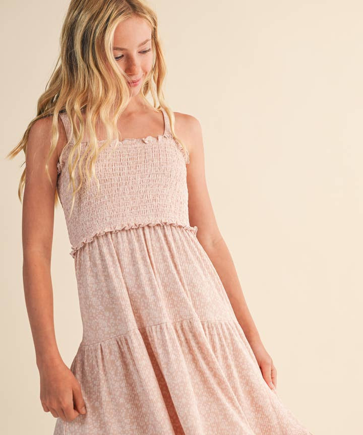 Pink Floral Tween Girls Smocked Tiered Midi Dress
