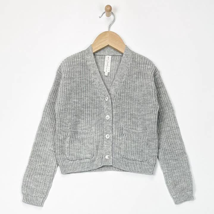 Each button is adorned with delicate embellishments, adding a touch of whimsy and elegance to the cardigan. The long sleeves offer warmth and versatility, making this cardigan a go-to layer for cooler days. Perfect for those moments when you want to add a sprinkle of charm to your outfit while staying cozy and stylish.