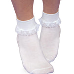 This simplicity lace sock is sure to dress up any outfit and make your little girl feel special. The delicate lace detail on the cuff showcases a beautiful floral pattern that is sure to catch the eye. Look girly and classy with this adorable lace sock. Sock features include smooth toe construction and reciprocated heel and toe for durability.  Perfect for dressing up, everyday, Easter outfits, and much more!