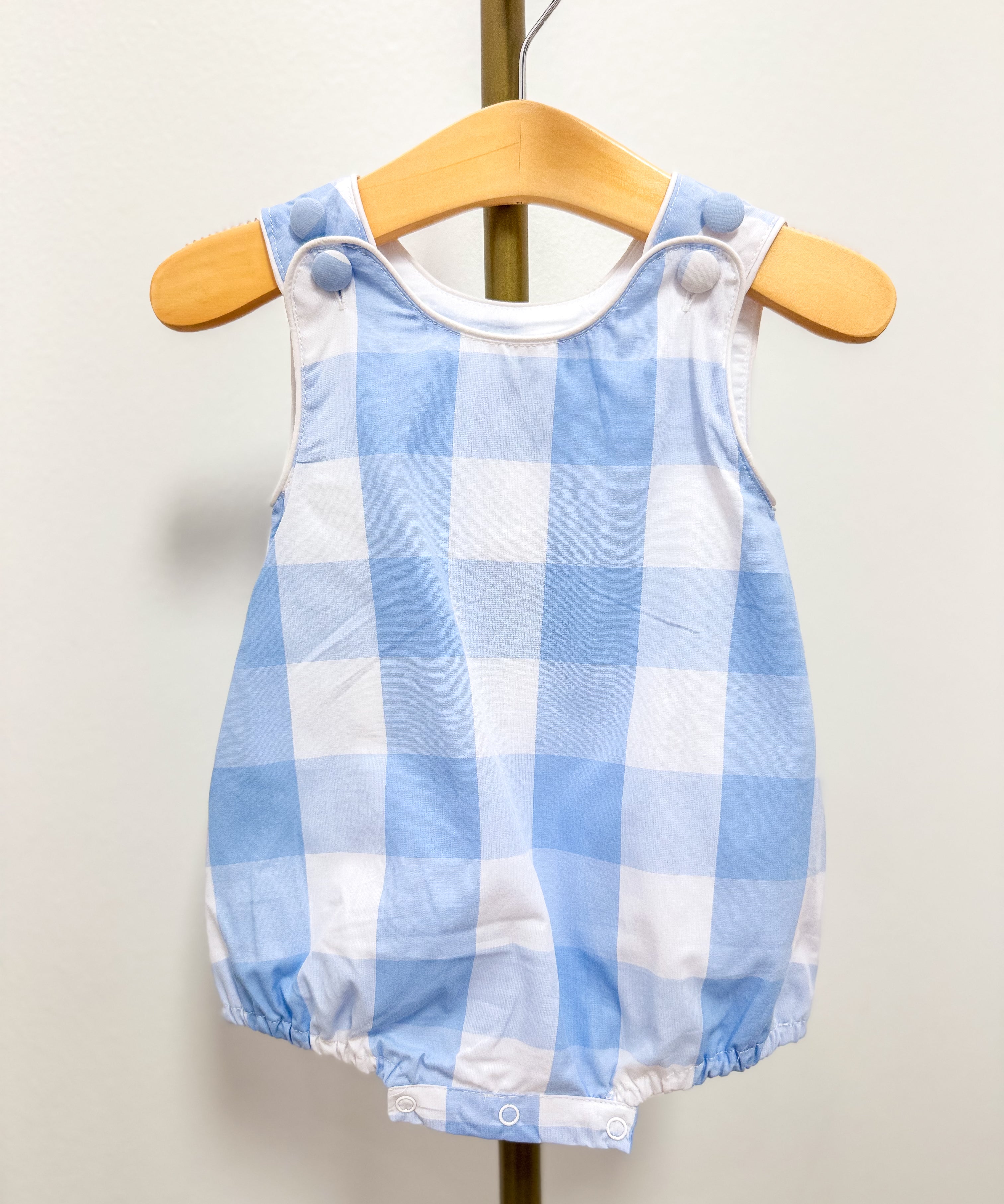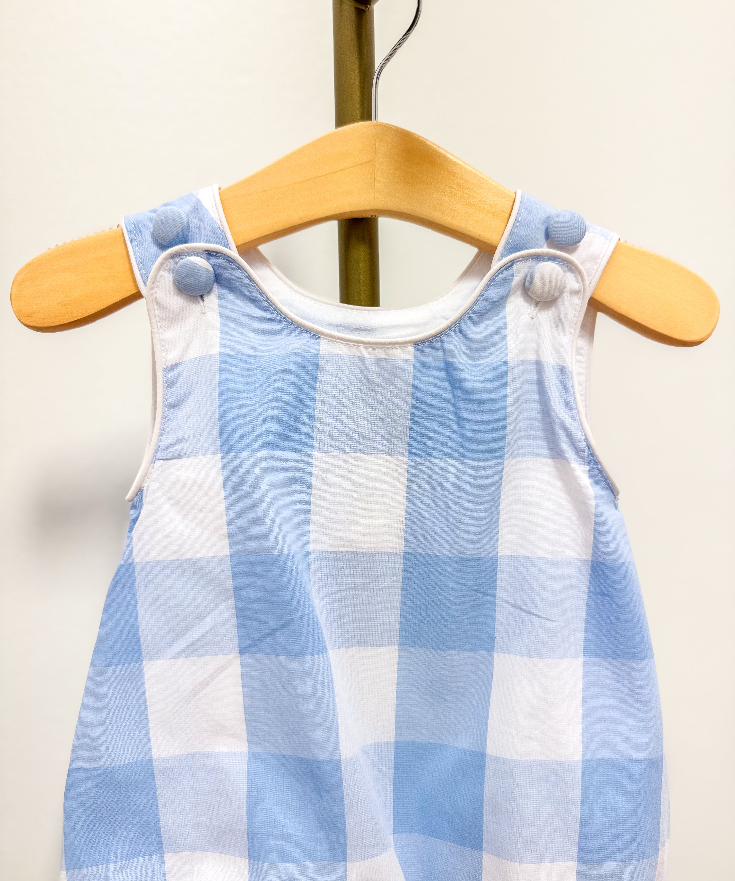 Light Blue Gingham Easter Egg & Bunnies Smocked JonJon