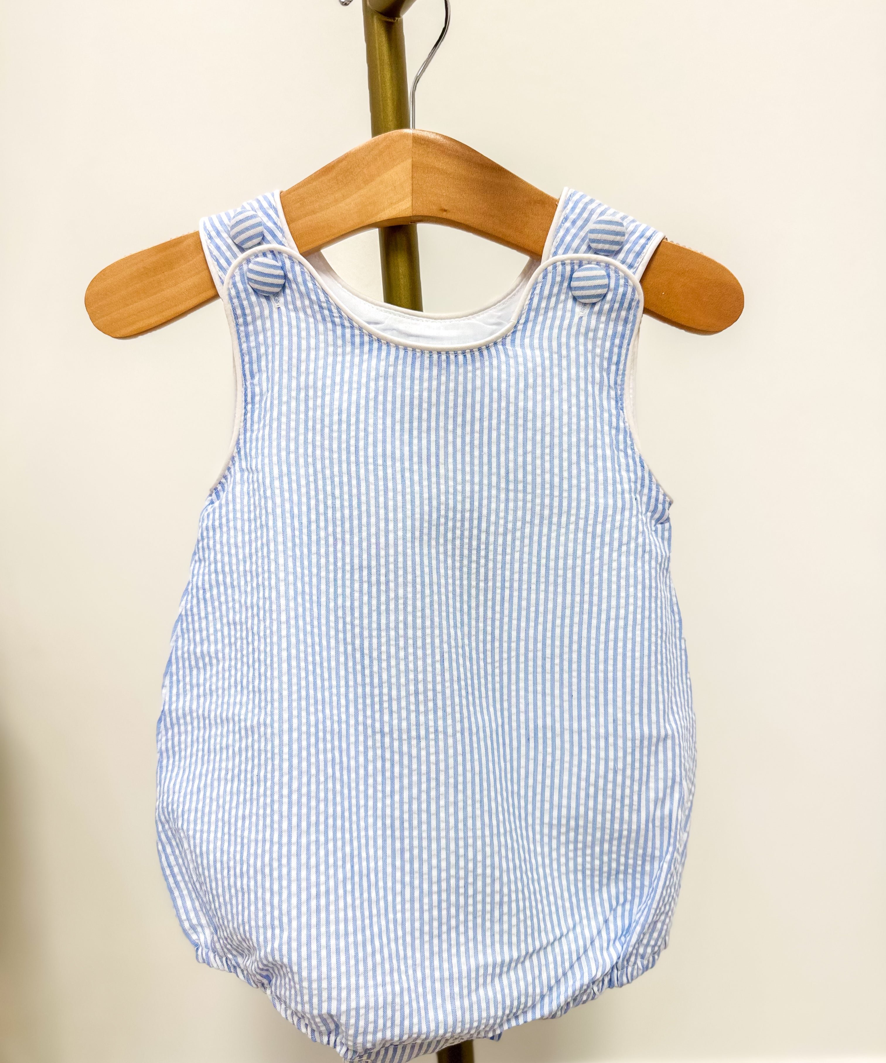 Light Blue Seersucker Easter Bunny Smocked Bishop Dress