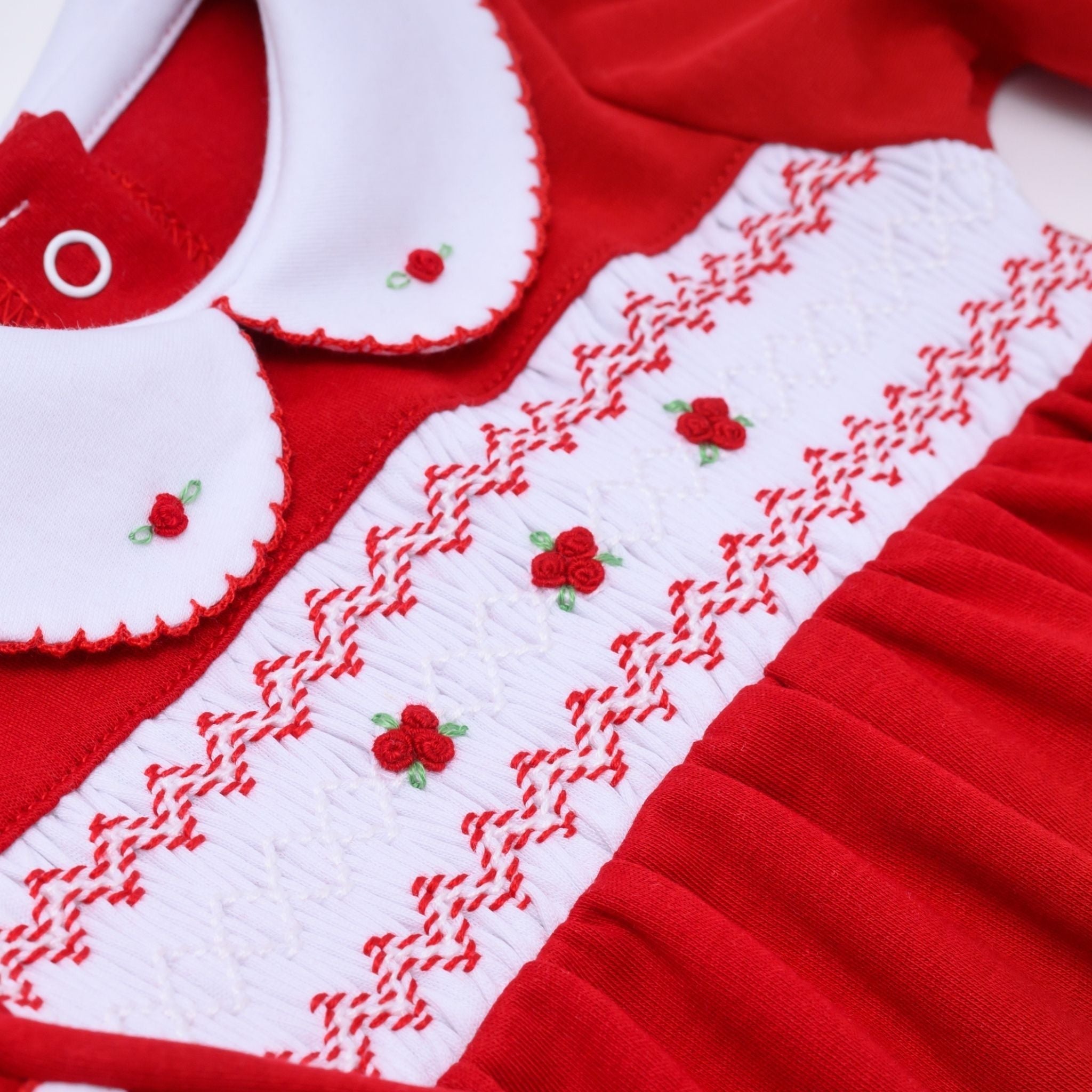 - Hand-Embroidered Smocking: Features elegant red smocking, adding timeless Christmas charm.