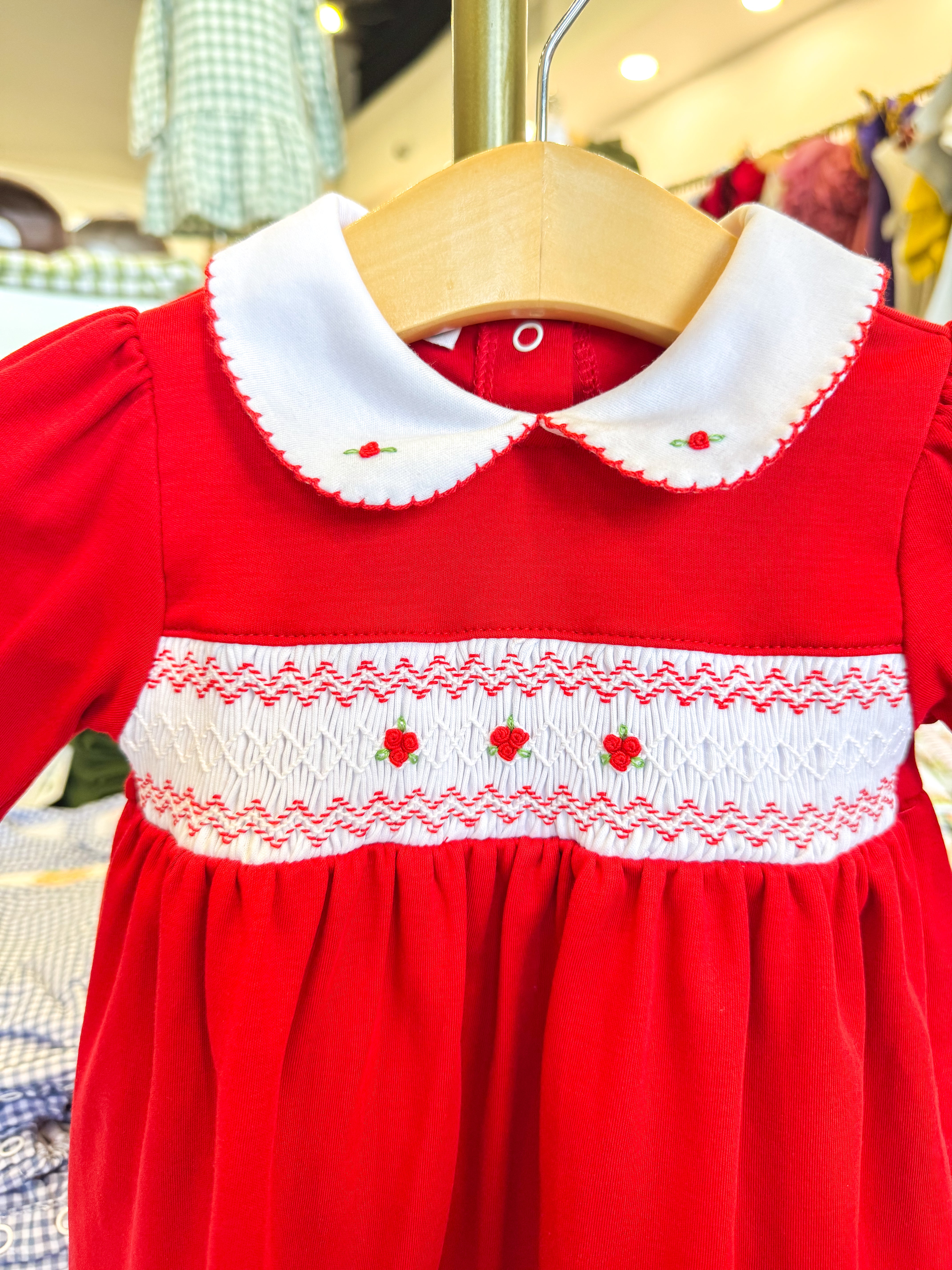 - Hand-Embroidered Smocking: Features elegant red smocking, adding timeless Christmas charm.