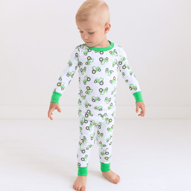 Magnolia Baby - Lil' Green Tractor Print Long Pajamas