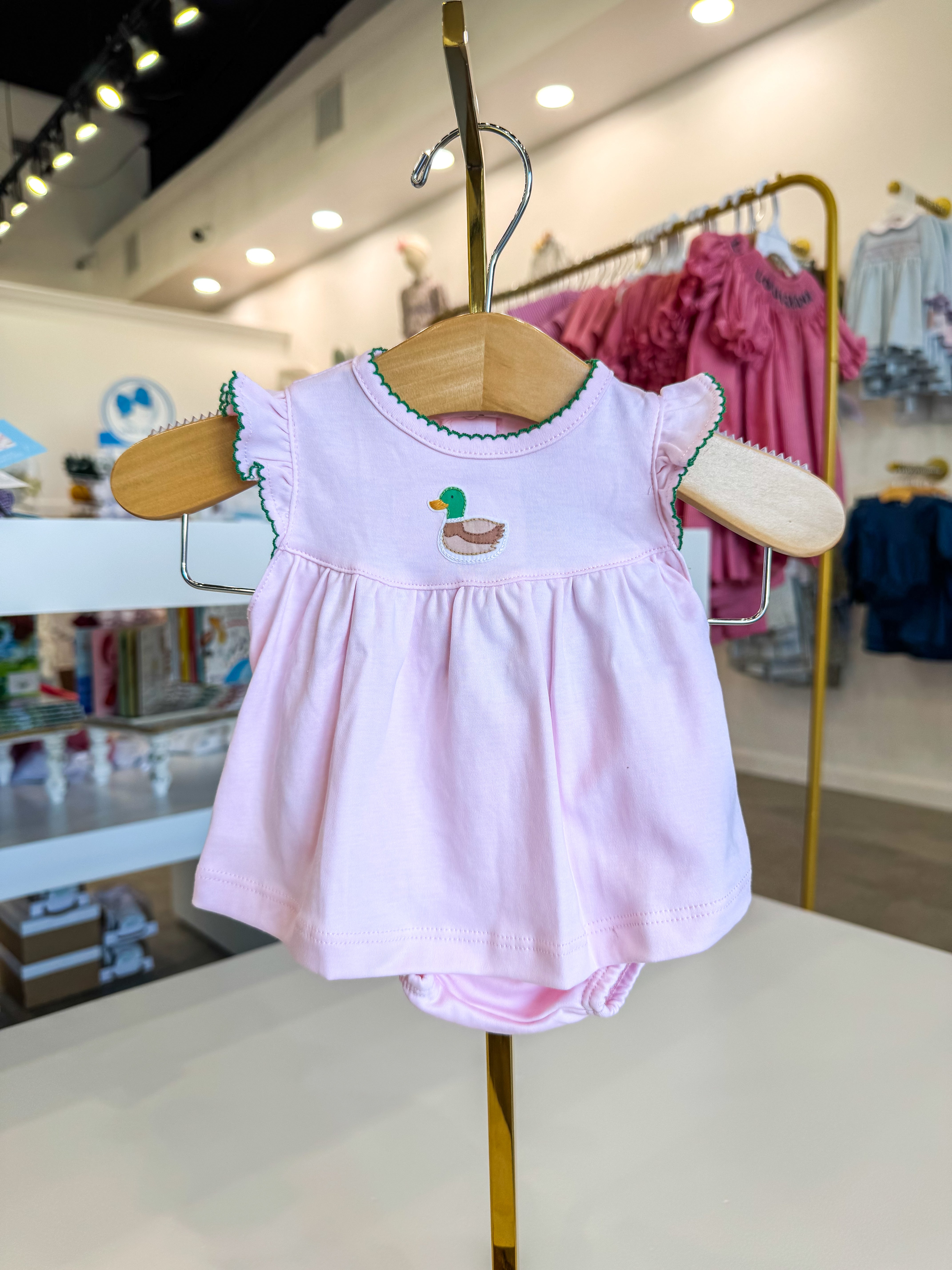 Mini Mallard Embroidered Ruffle Pink Diaper Set