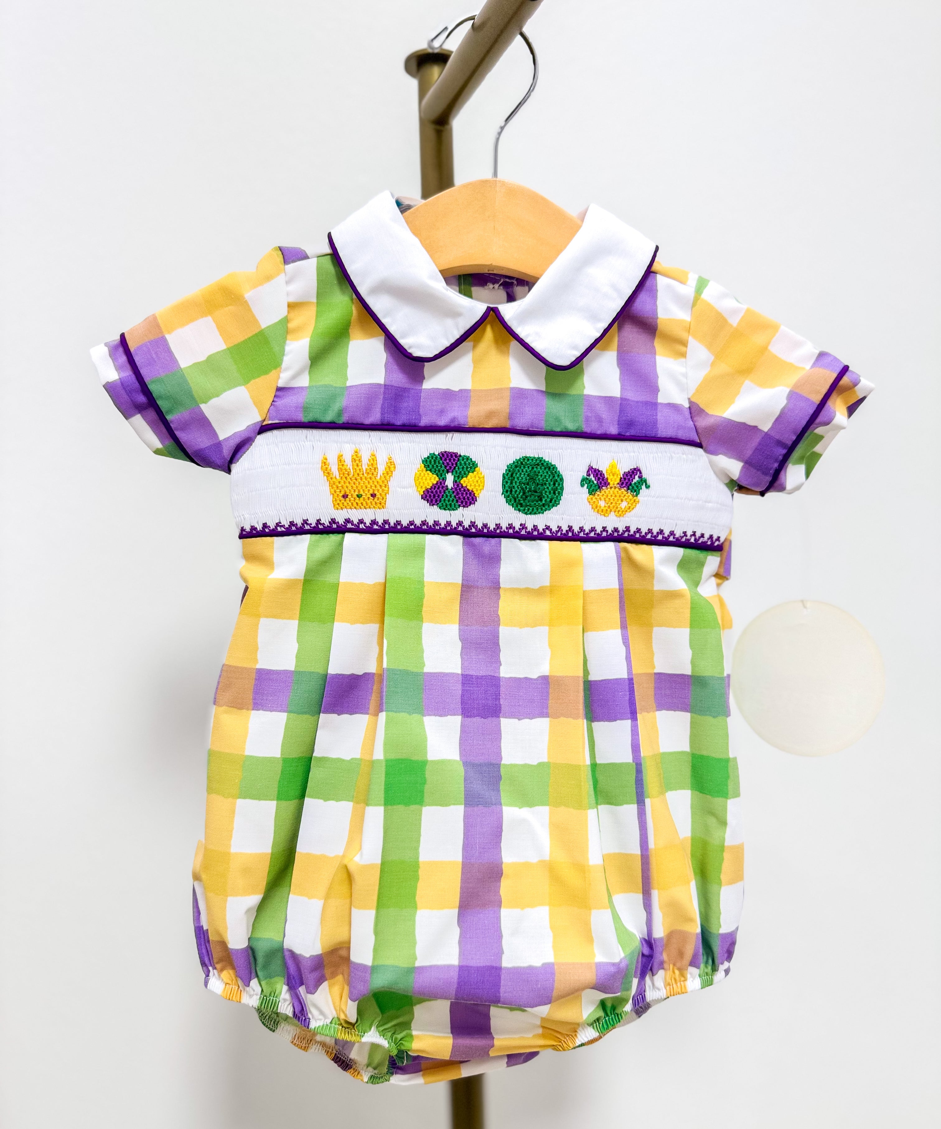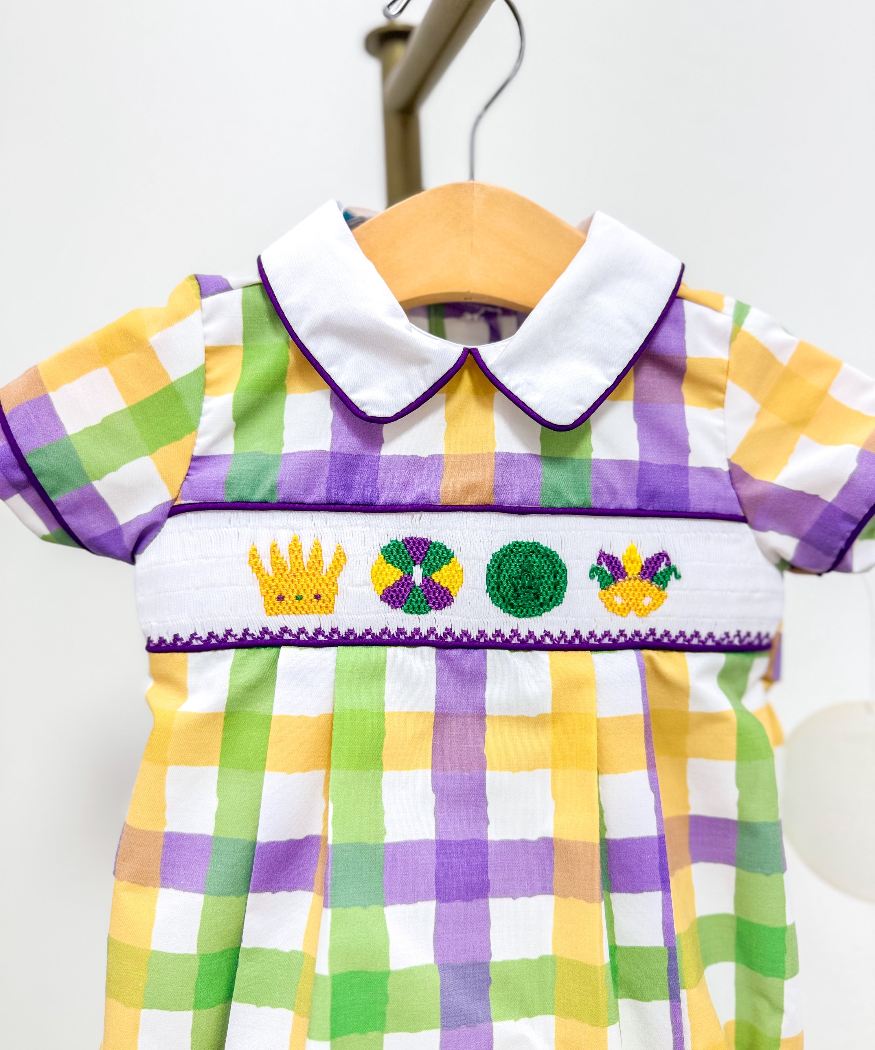 Elliott Embroidered King Cake Gingham Jon Jon