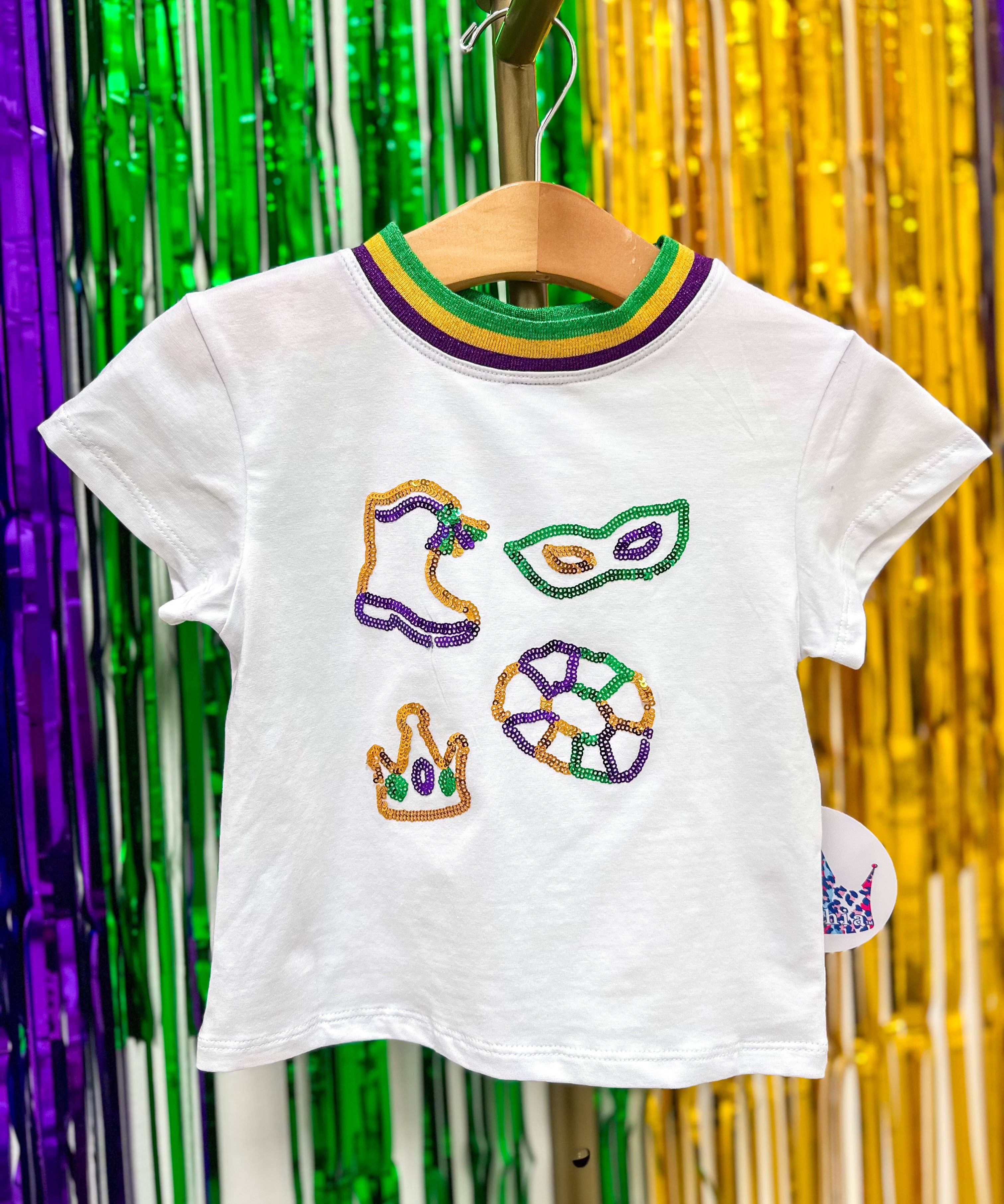 Mardi Gras Elements in Sequin White Boxy Tee