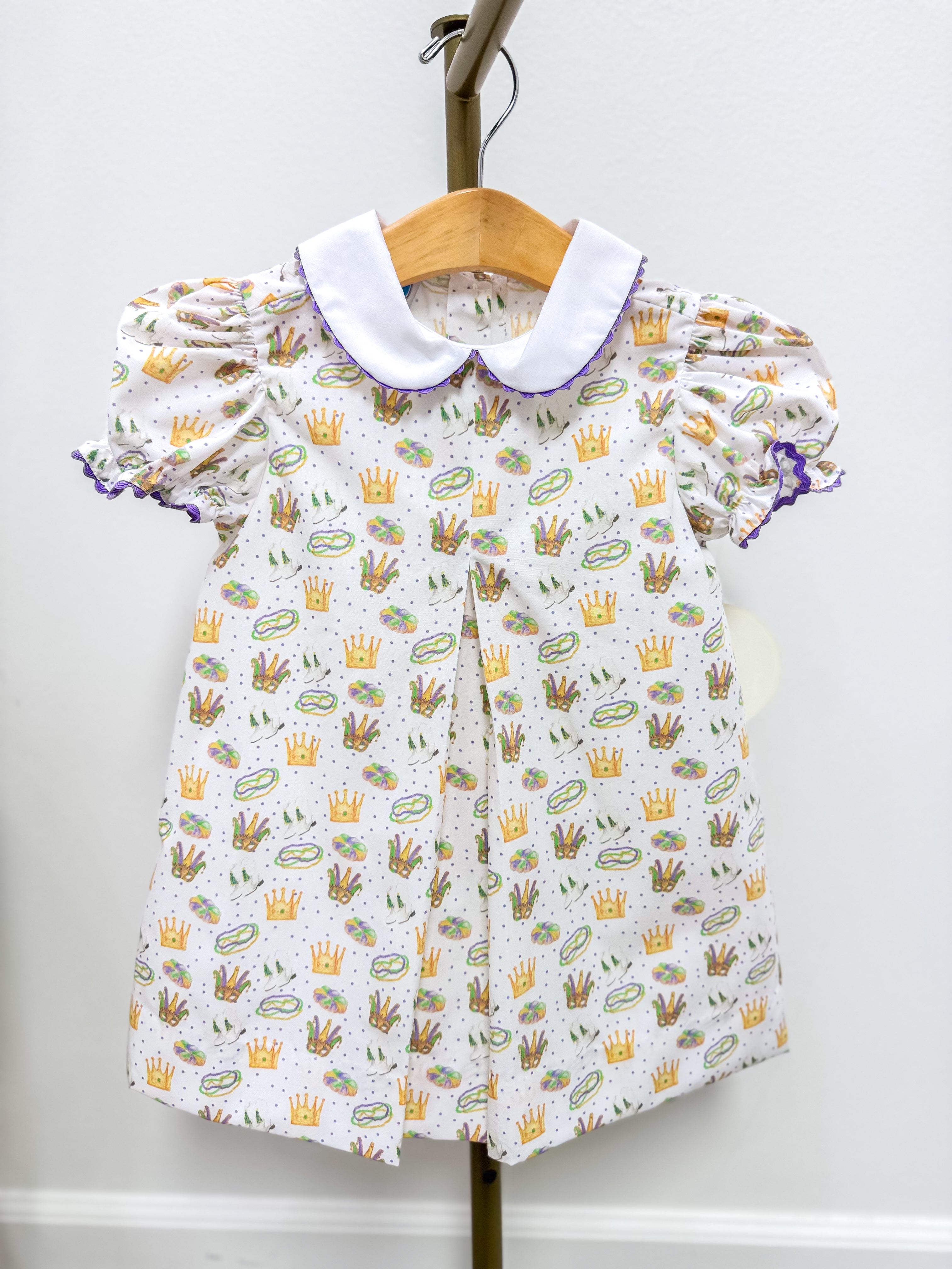Isabelle Mardi Gras Icons Print Pleat Dress
