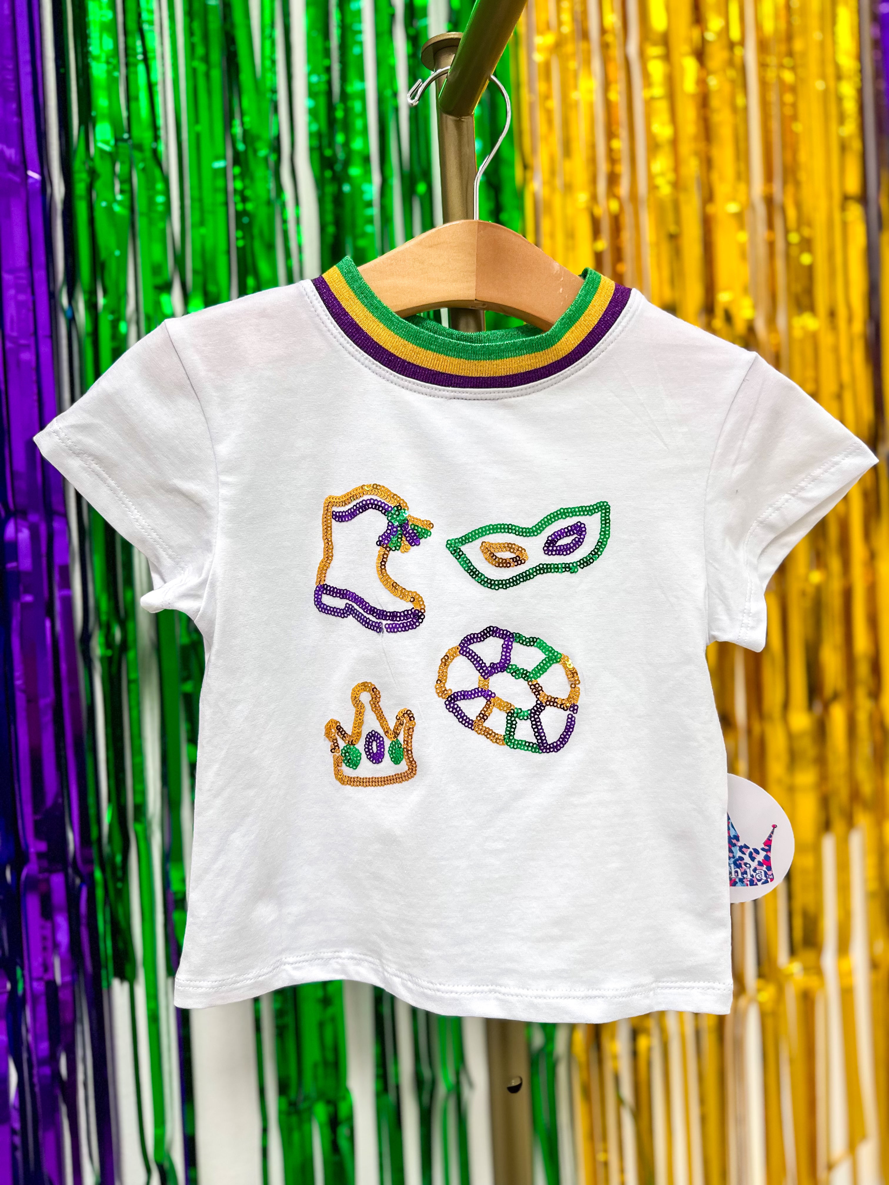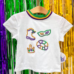 Mardi Gras Elements in Sequin White Boxy Tee