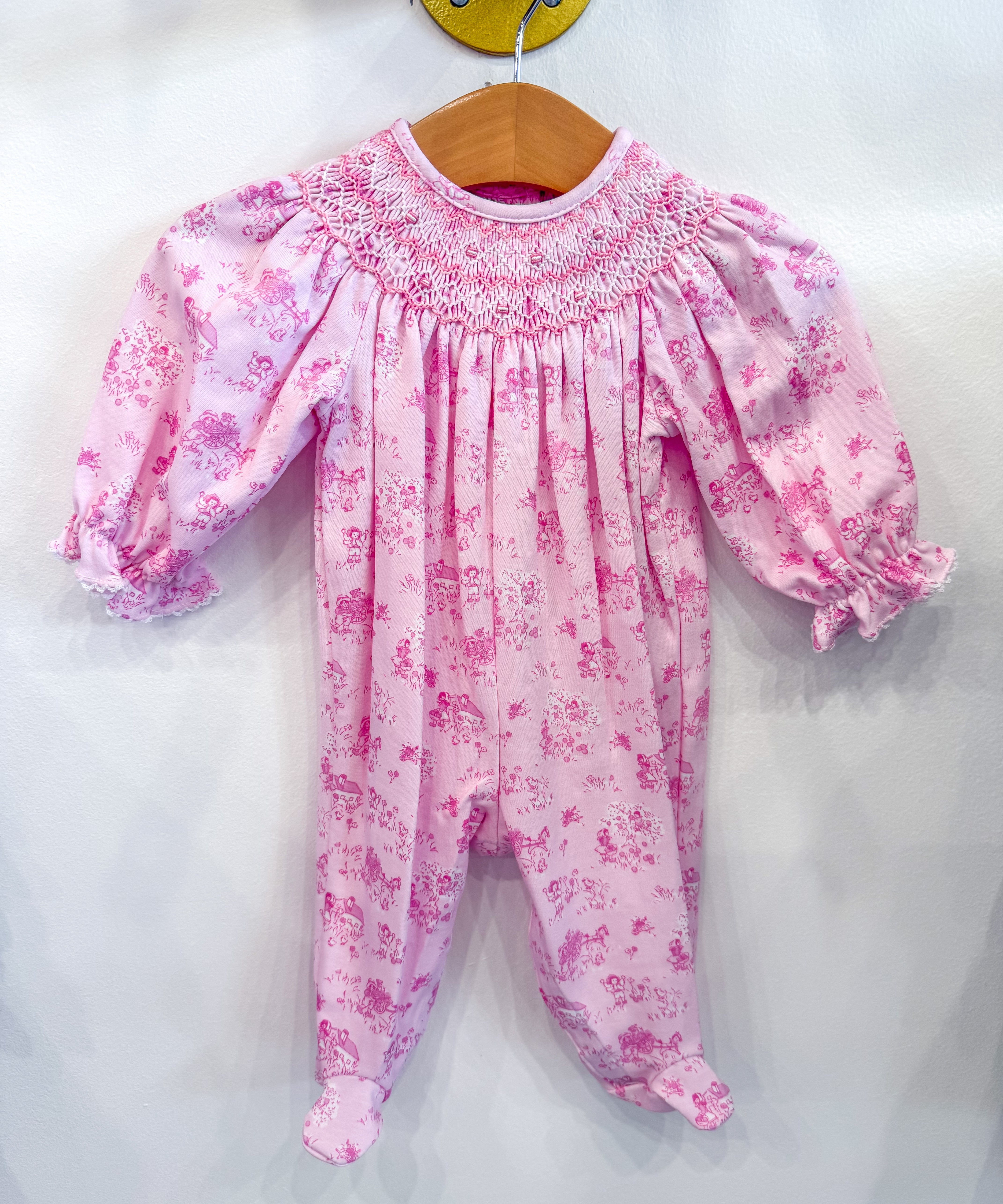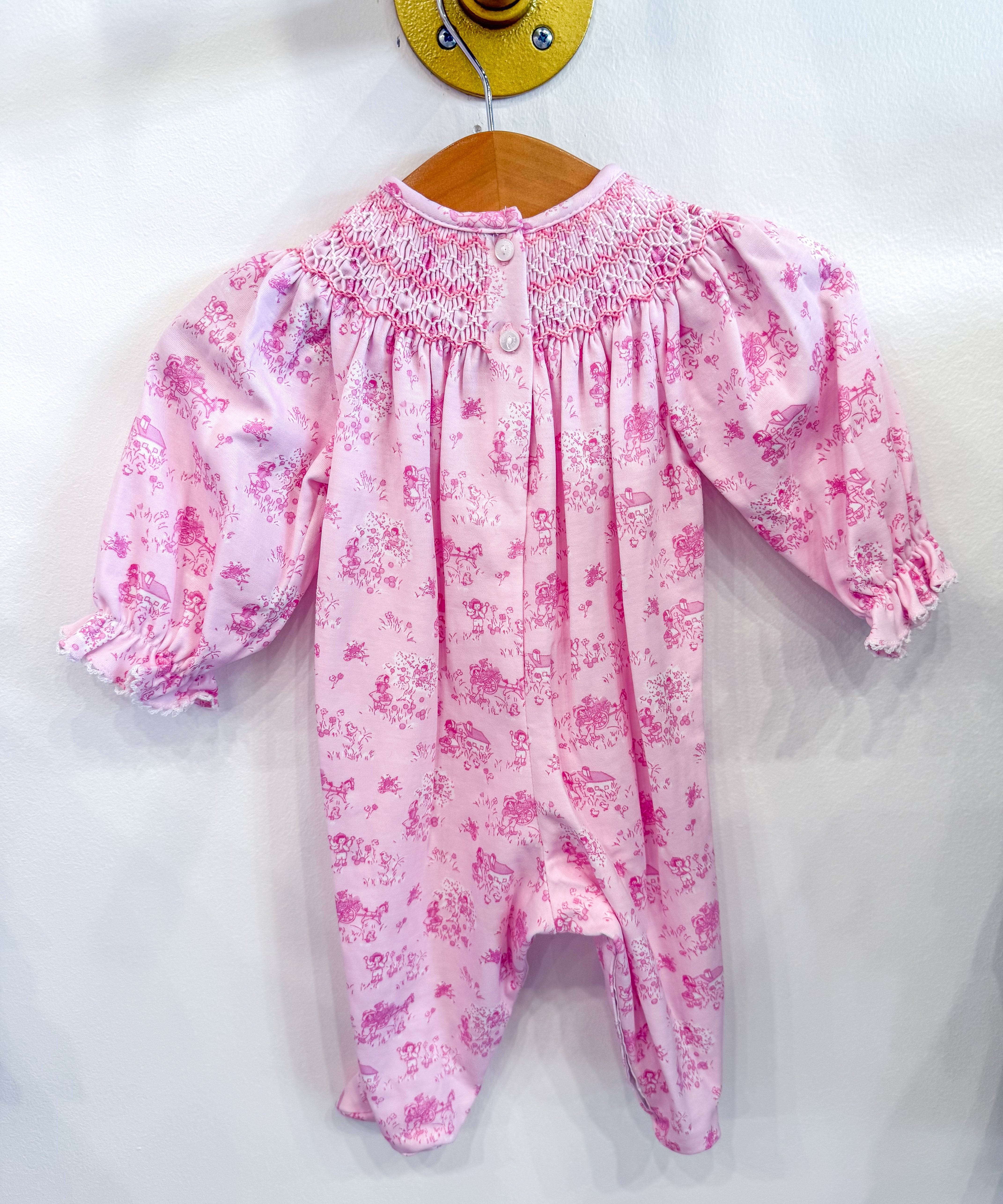 Girls Pink French Toille Footie