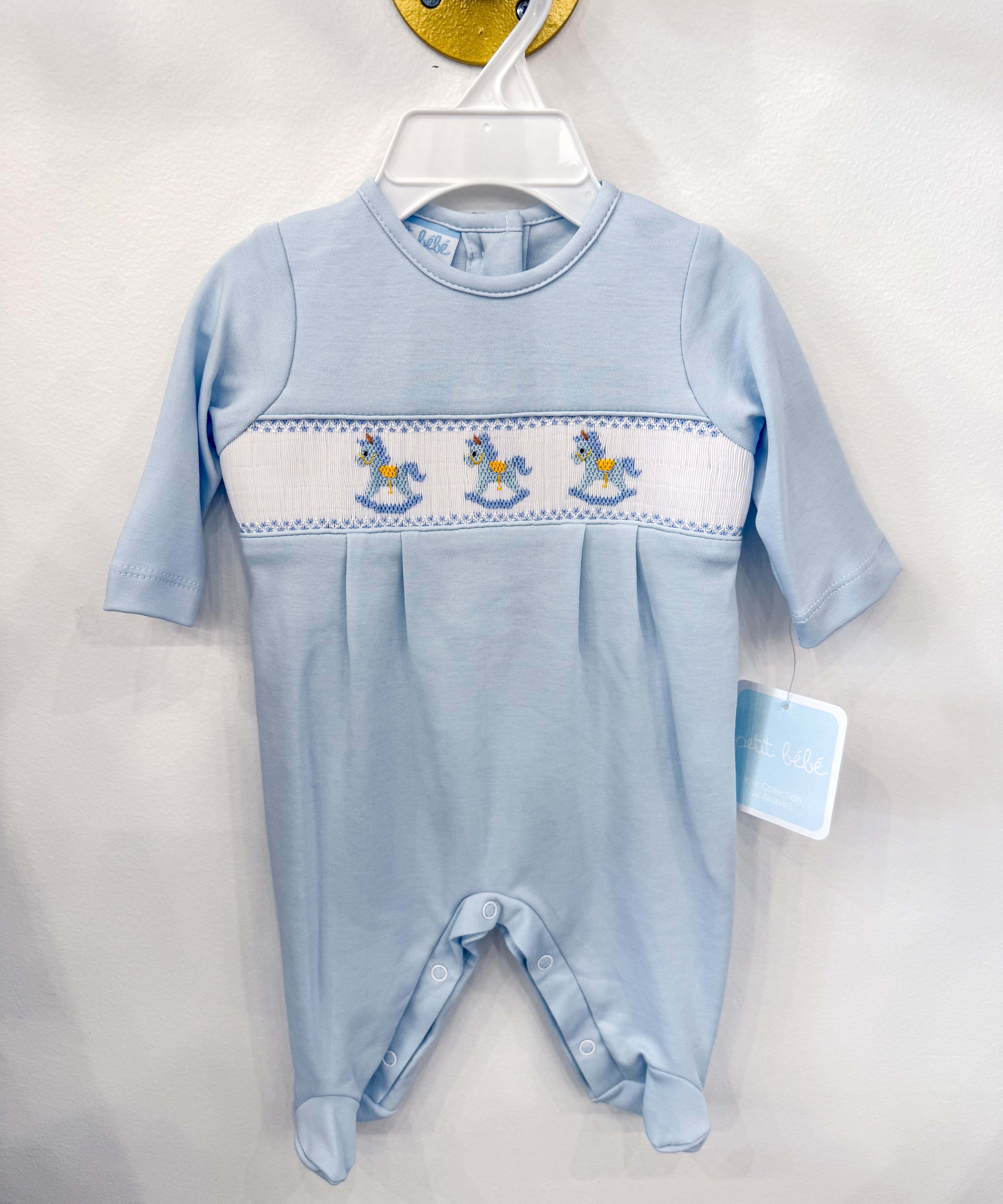 Rocking Horses - Lt. Blue Boy's Long Footie