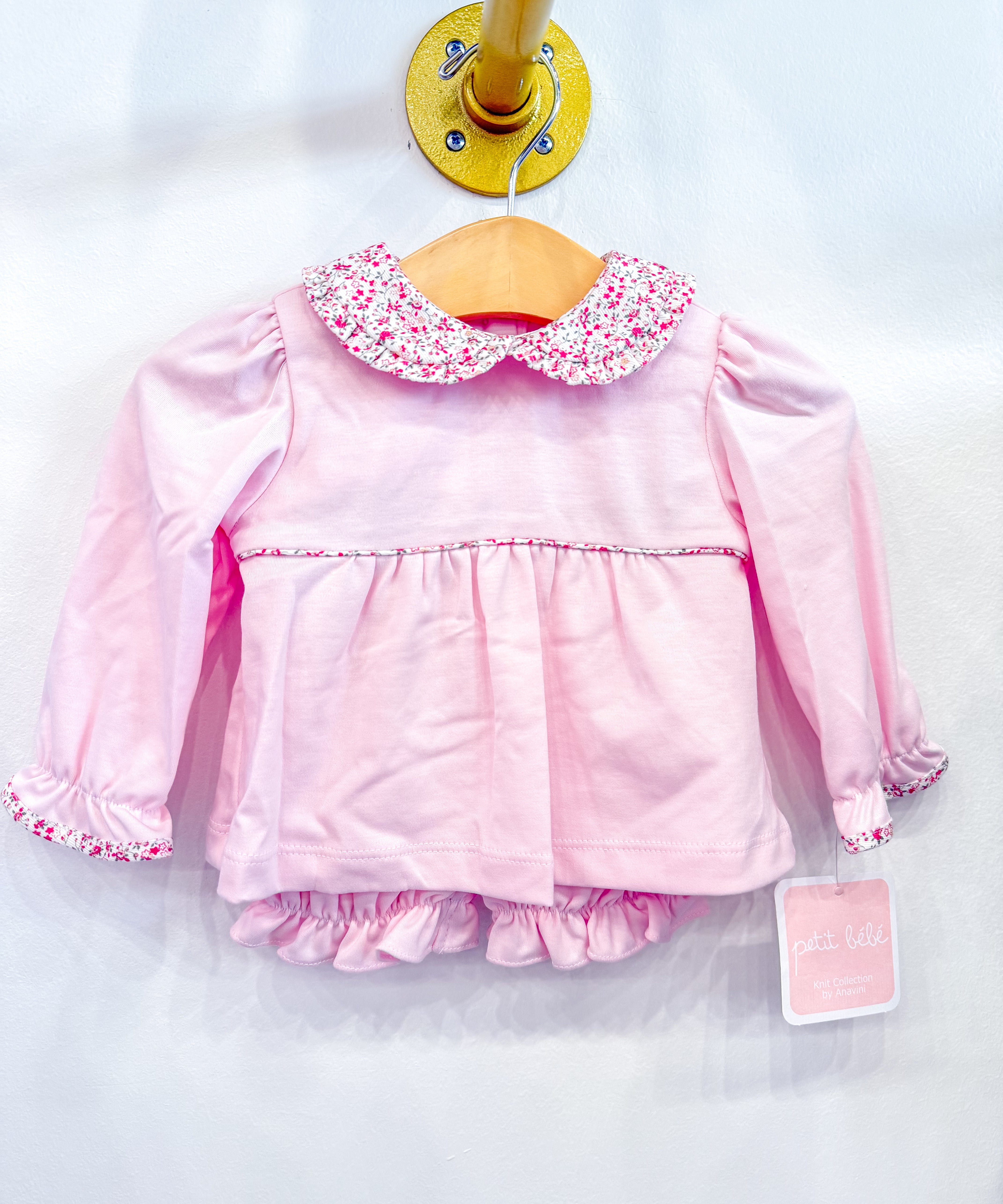 Girls Pink Knit Bloomer Set Liberty Trim