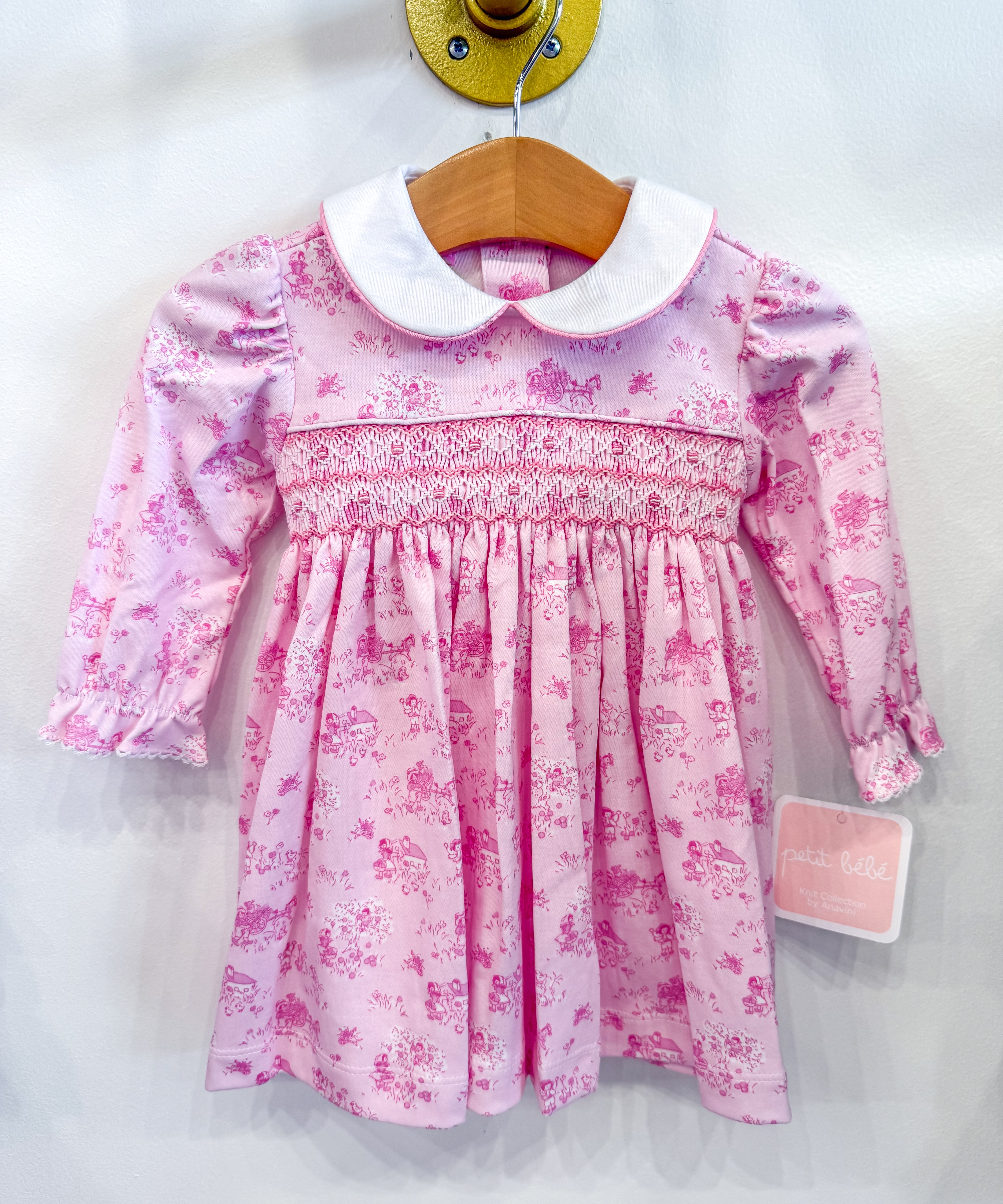 Girls Pink French Toille Print Dress