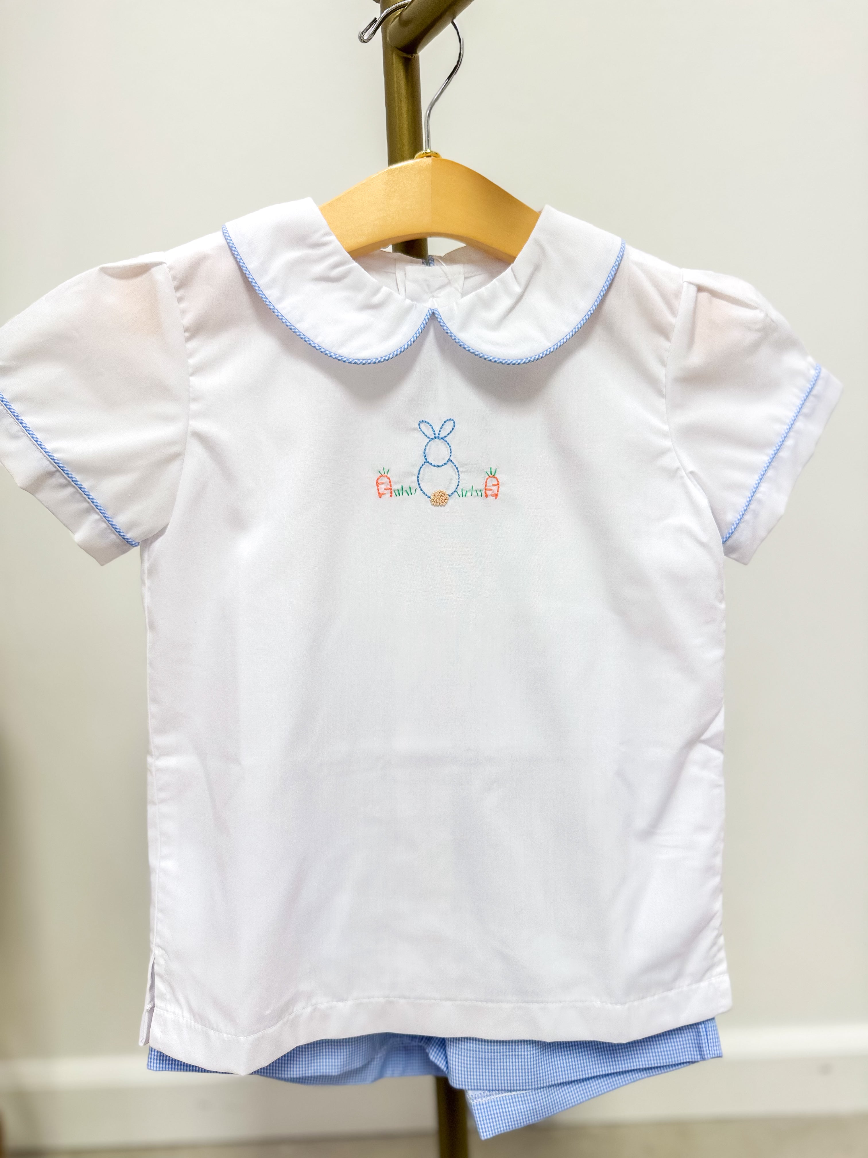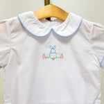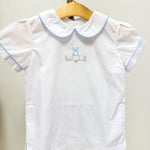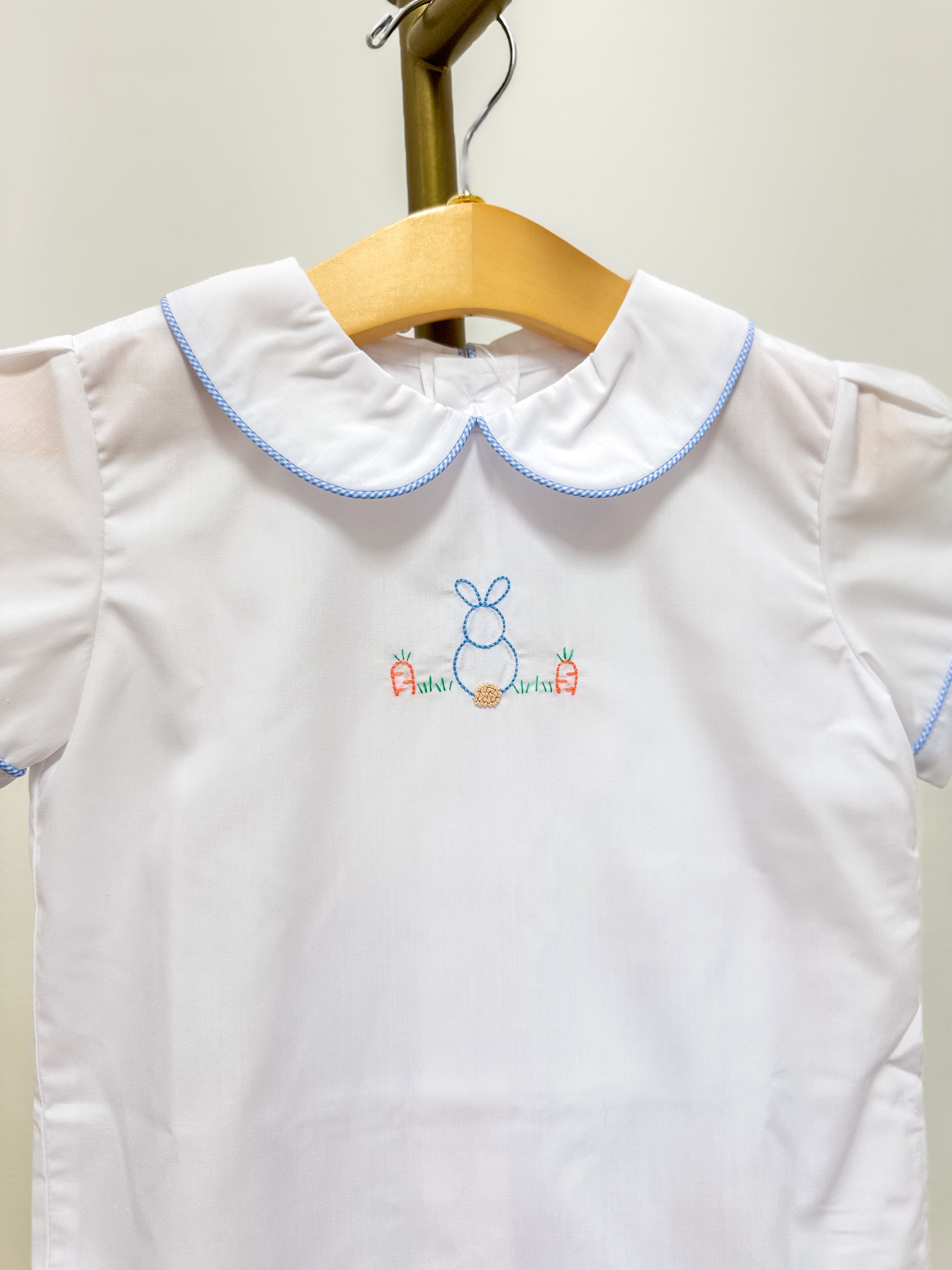 Be dressed and ready for the Easter season in our Clover Bunny collection! Soft blue and white with hand-embroidered bunny makes for the sweetest styles.  We love this paired with knee highs or sandals, just take your pick.
