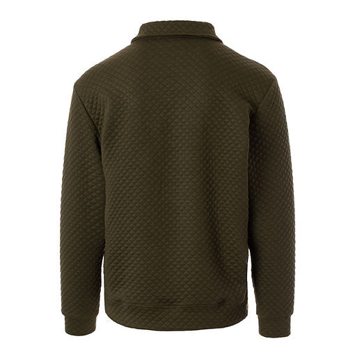 Our fleece is a soft-shell interlock material with lower zipped pockets, a deep quarter-zip neck, and an elastic waist hem.