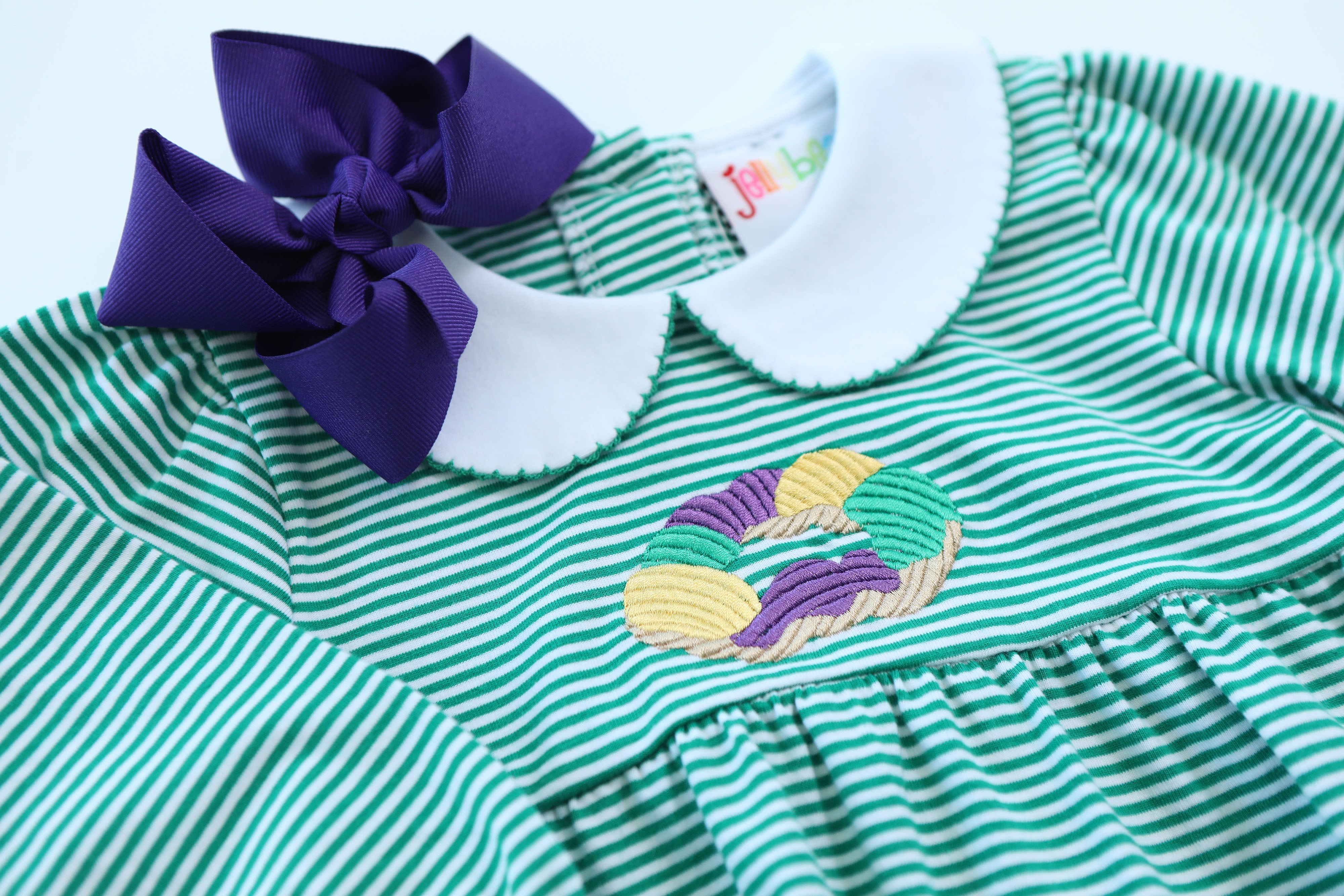 Let’s get this party started with the King Cake Embroidery Bubble! This adorable bubble is perfect for partying on a Tuesday!