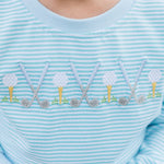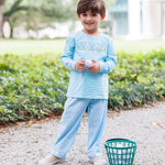 Swing into style with our Tee Time Pant Set! This playful fall ensemble features a charming striped shirt paired with coordinating pants, adorably embroidered with golf clubs and golf balls. Perfect for your little golfer-in-training to look par-tly adorable on and off the course!