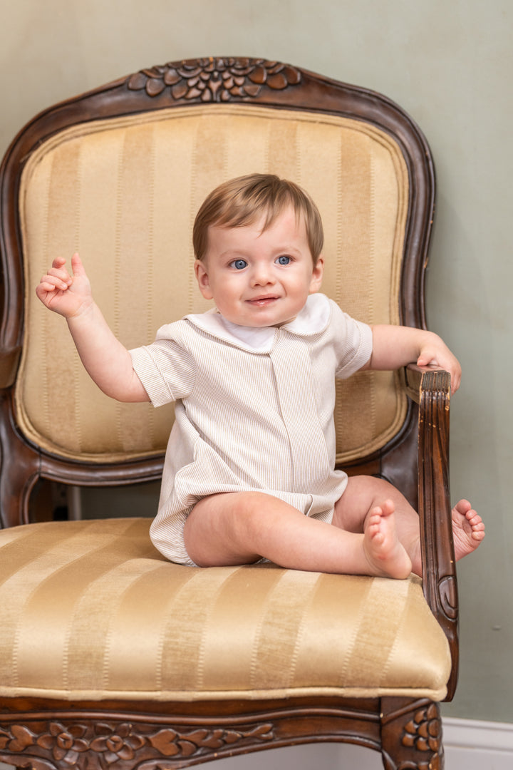 Effortless charm meets seasonal style with the Brandon Sandbar Stripe Bubble. This sweet pleated bubble captures that perfect spring-to-summer transition in a timeless tan and white stripe. Whether you're posing for candid beach moments or layering for cooler days, the bubble silhouette adds playful dimension to any outfit.