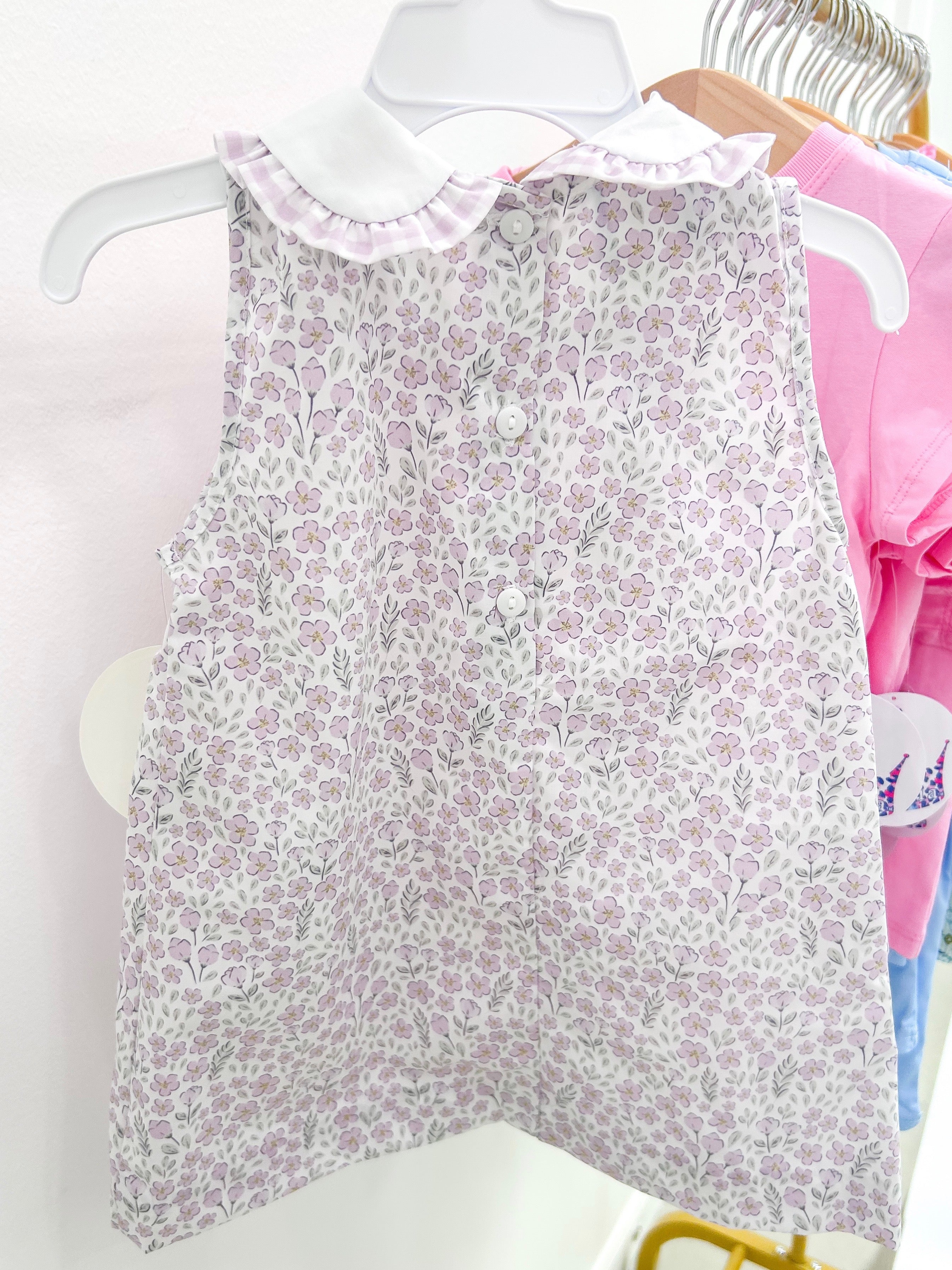 That sweet Peter Pan collar and front ruffle give it just enough special-occasion charm without being too precious for playground duty. The A-line cut means she can actually move (and you can actually get it over her head without a meltdown). The soft floral print hides mysterious stains while looking like you spent way more time putting her outfit together than you actually did.