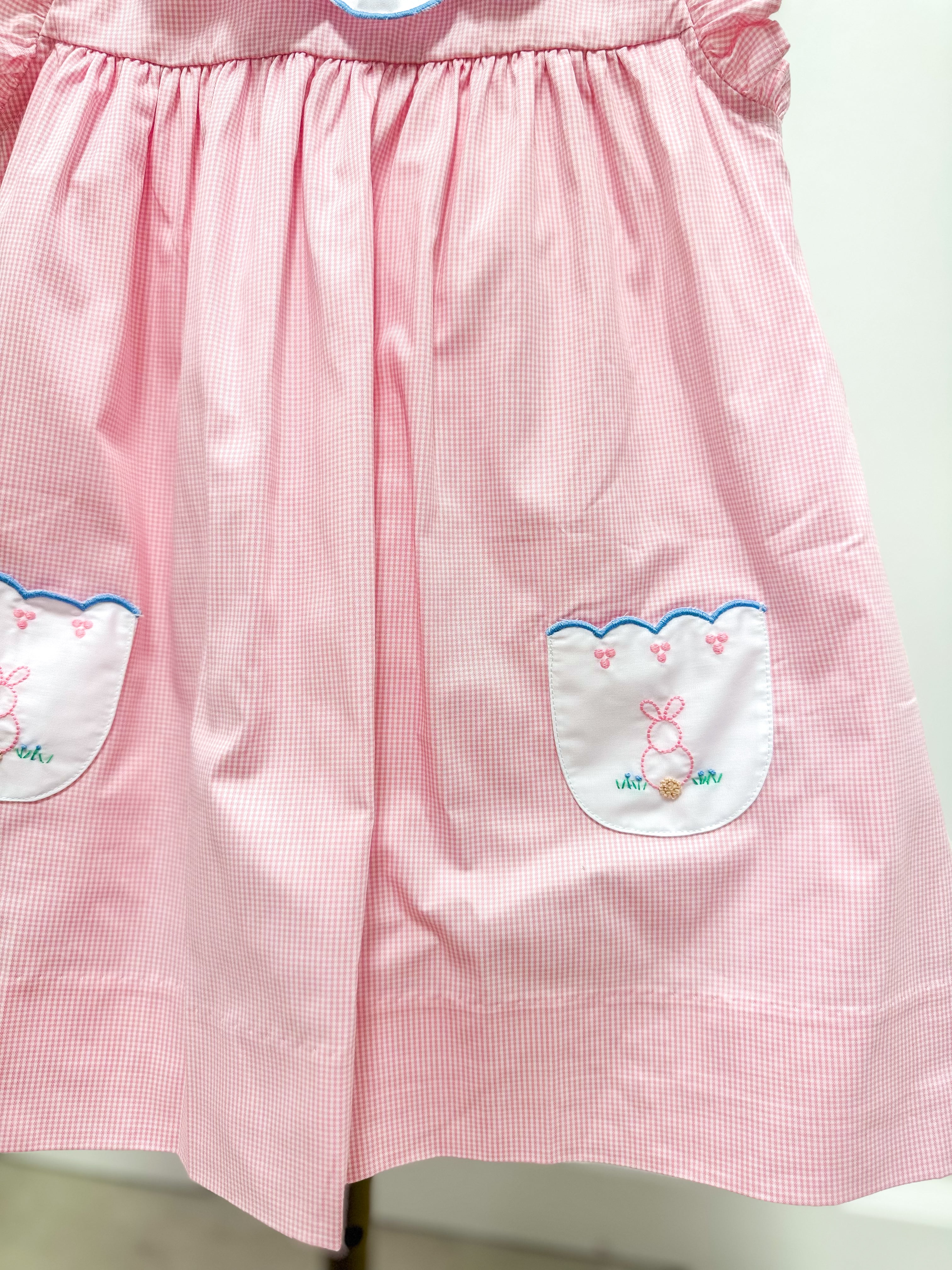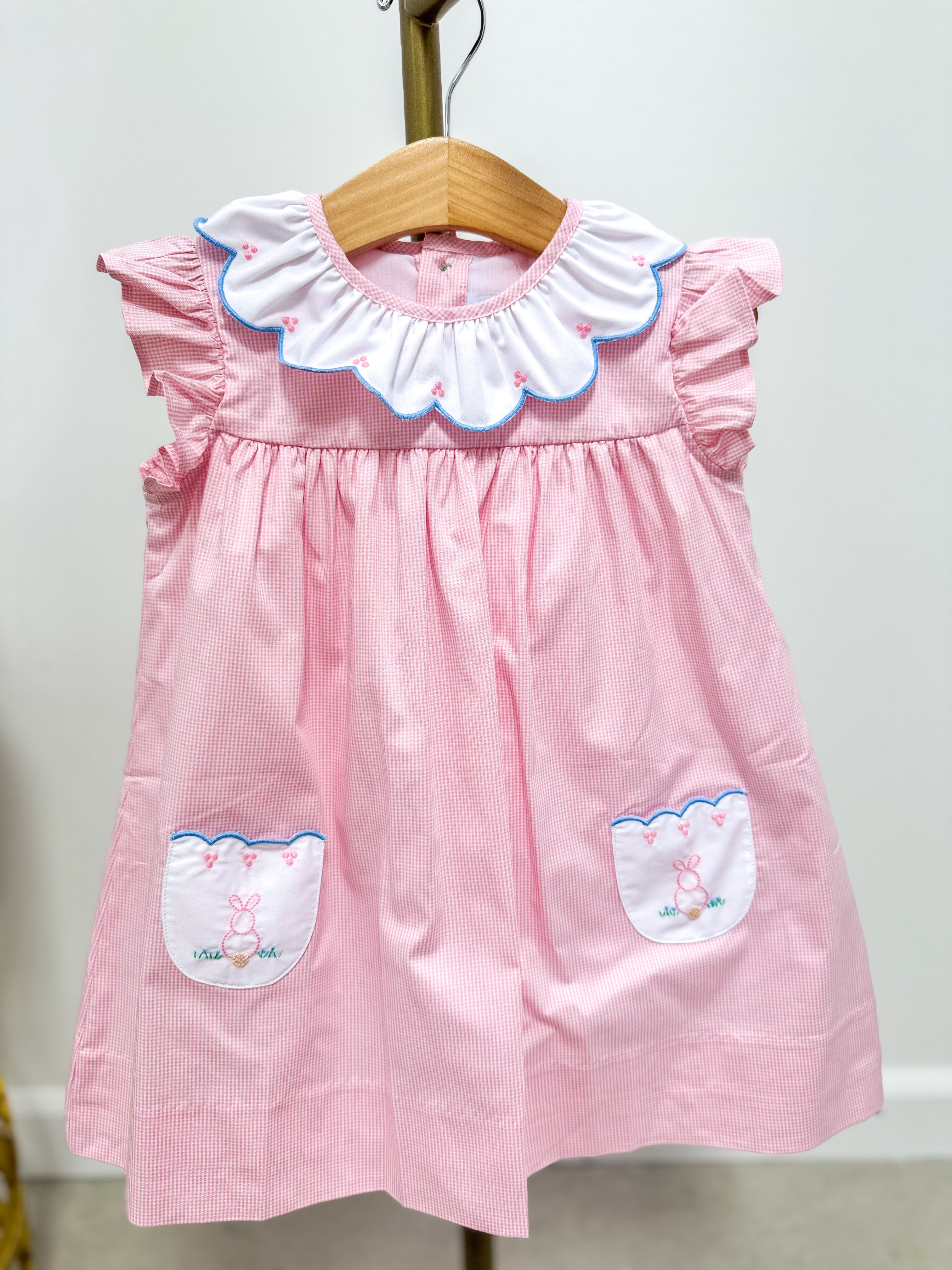 Be dressed and ready for the Easter season in our Clover Bunny collection! Soft pink with blue scallop trim and hand-embroidered bunnies makes for the sweetest styles.