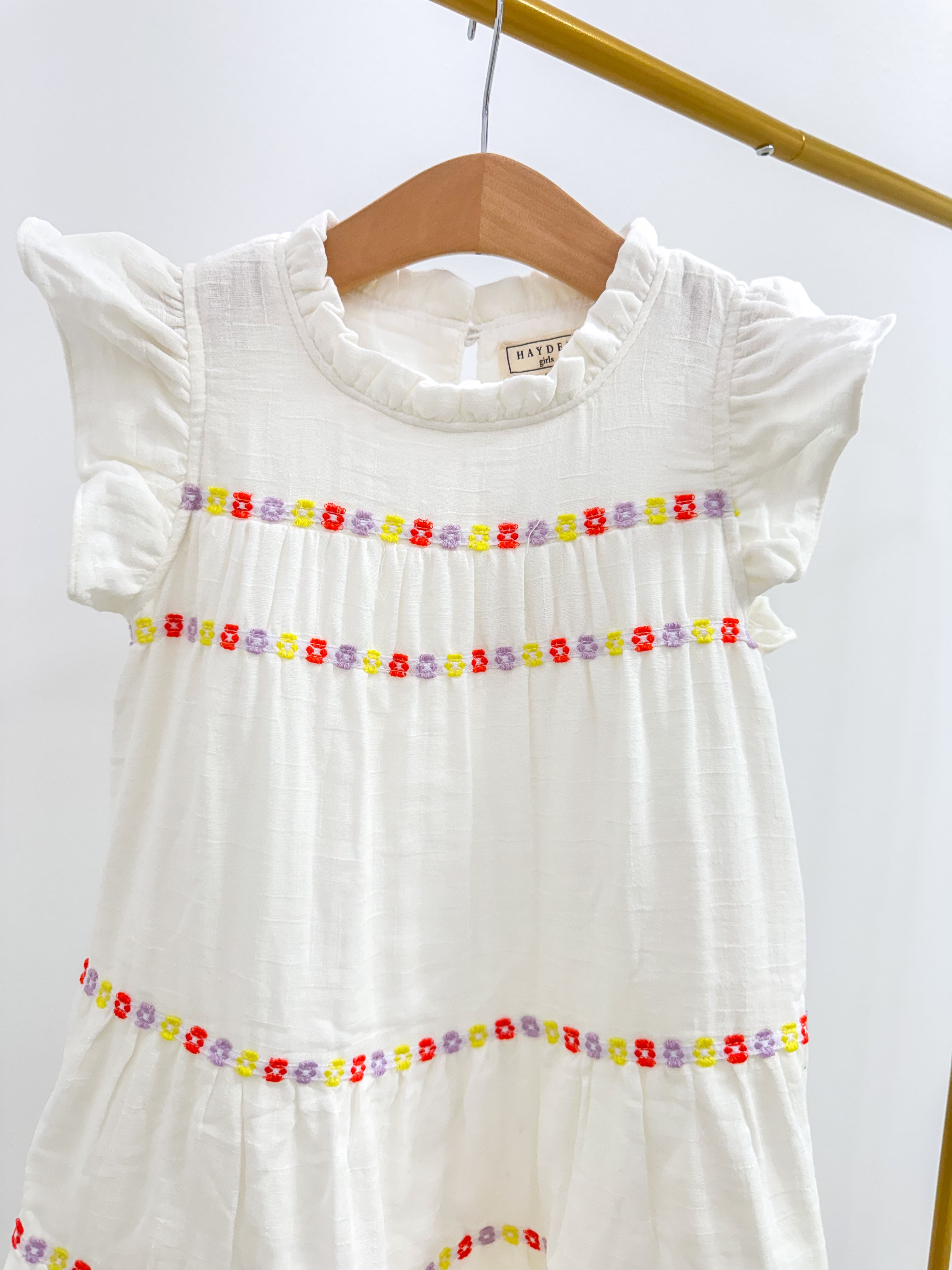 Contrast Floral Lace Trim Ruffle Tank Dress