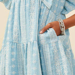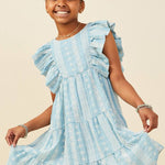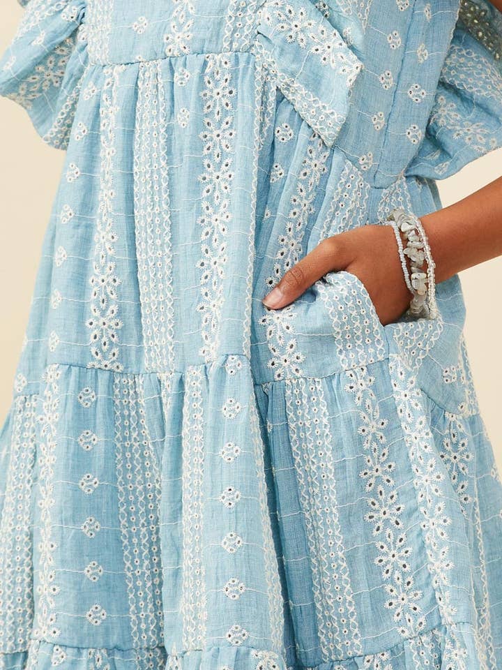 Girls Blue Embroidered Ruffle Lace Dress