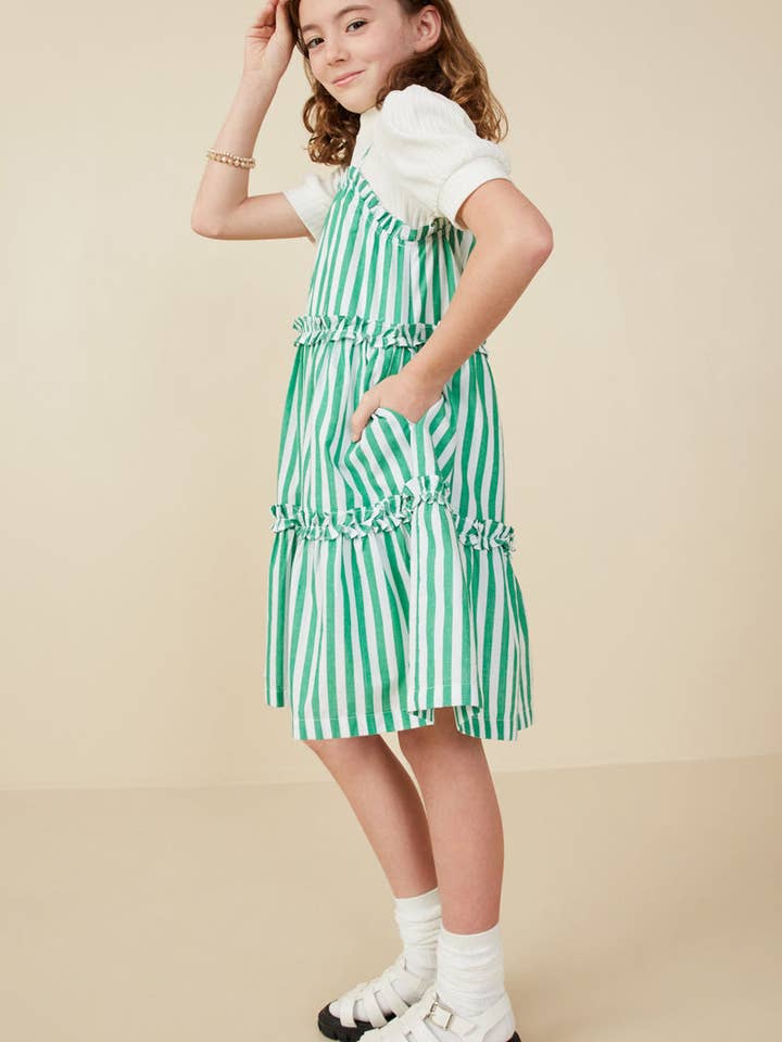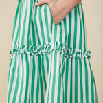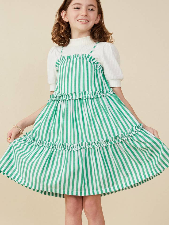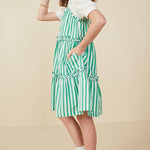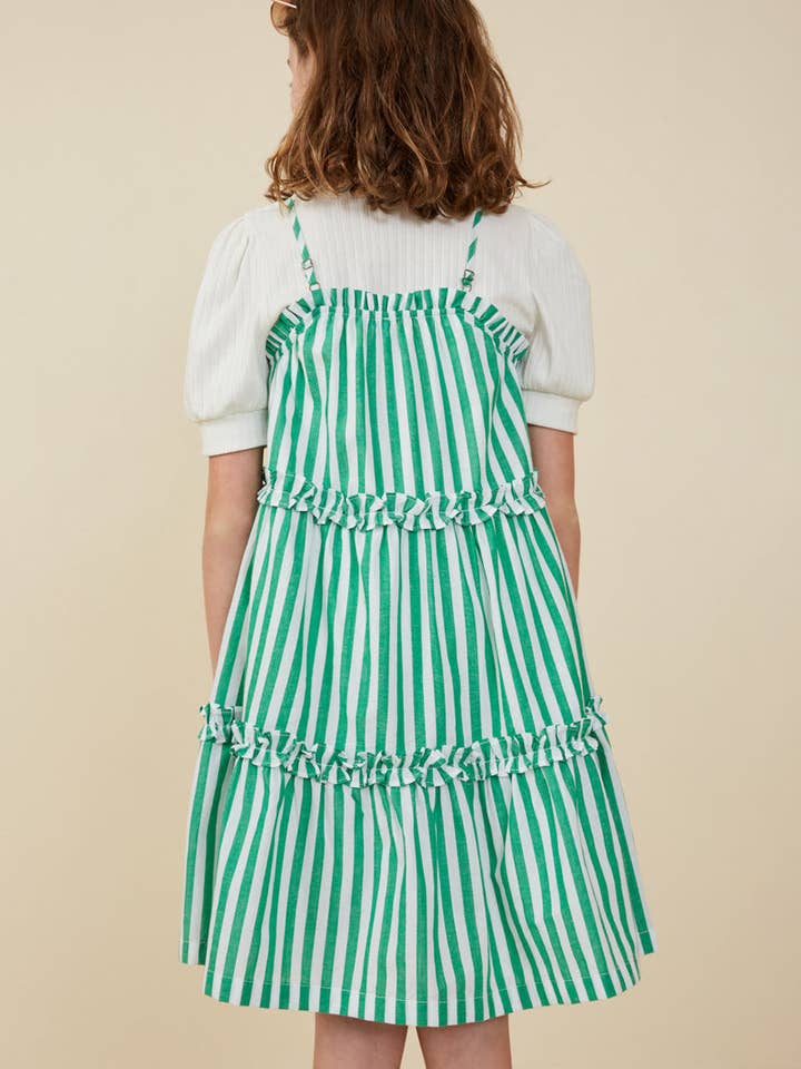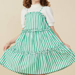 Girls Green Striped Poplin Dress