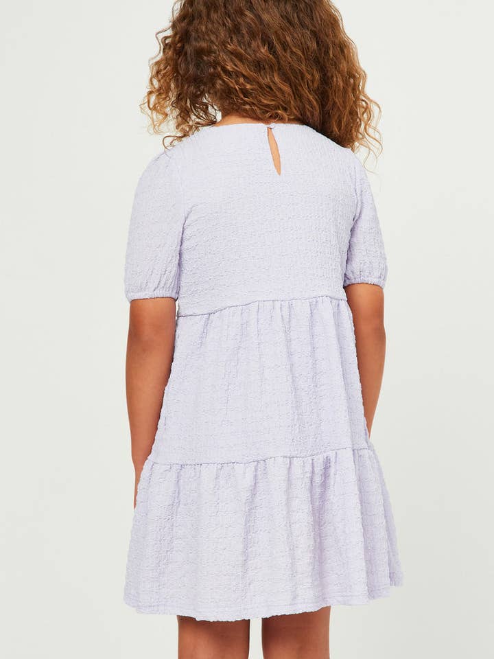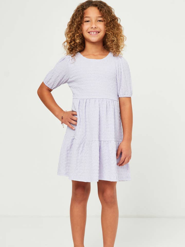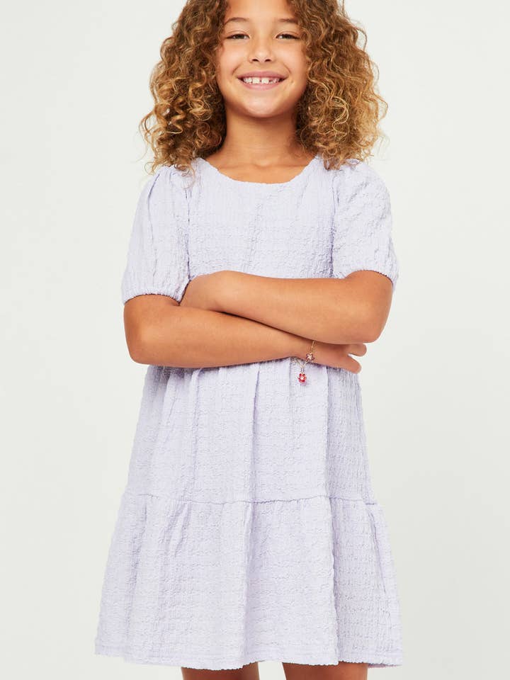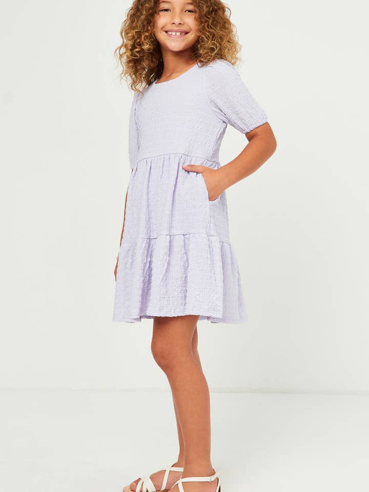 Our Textured Knit Roundneck Tiered Knit Dress Features: * Textured Knit Fabric * Side Pockets * Back Keyhole Closure Measurements: Size Length Chest Waist Small 27" 13.5" 13.5" Medium 28.5" 14.5" 14.5" Large 30" 15.5" 15.5" X-Large 31.5" 17" 17" The measurements in the chart above reflect the garment laying flat. For body measurements please visit our Size Guide. Model Stats: * Height: 4'1" * Wearing Size: S Material & Care: * 95% Polyester 5% Spandex * Hand Wash Cold * Hang Dry