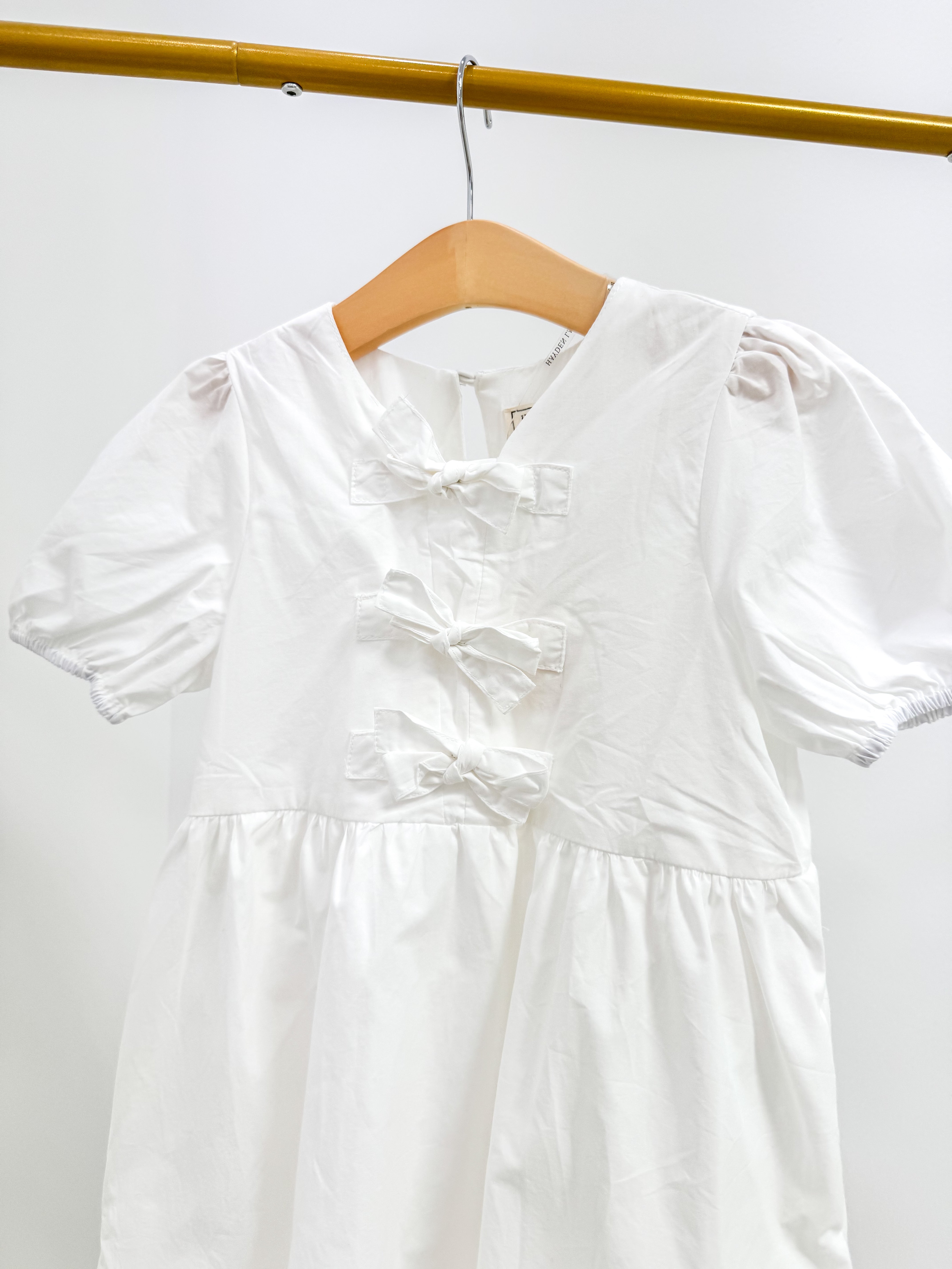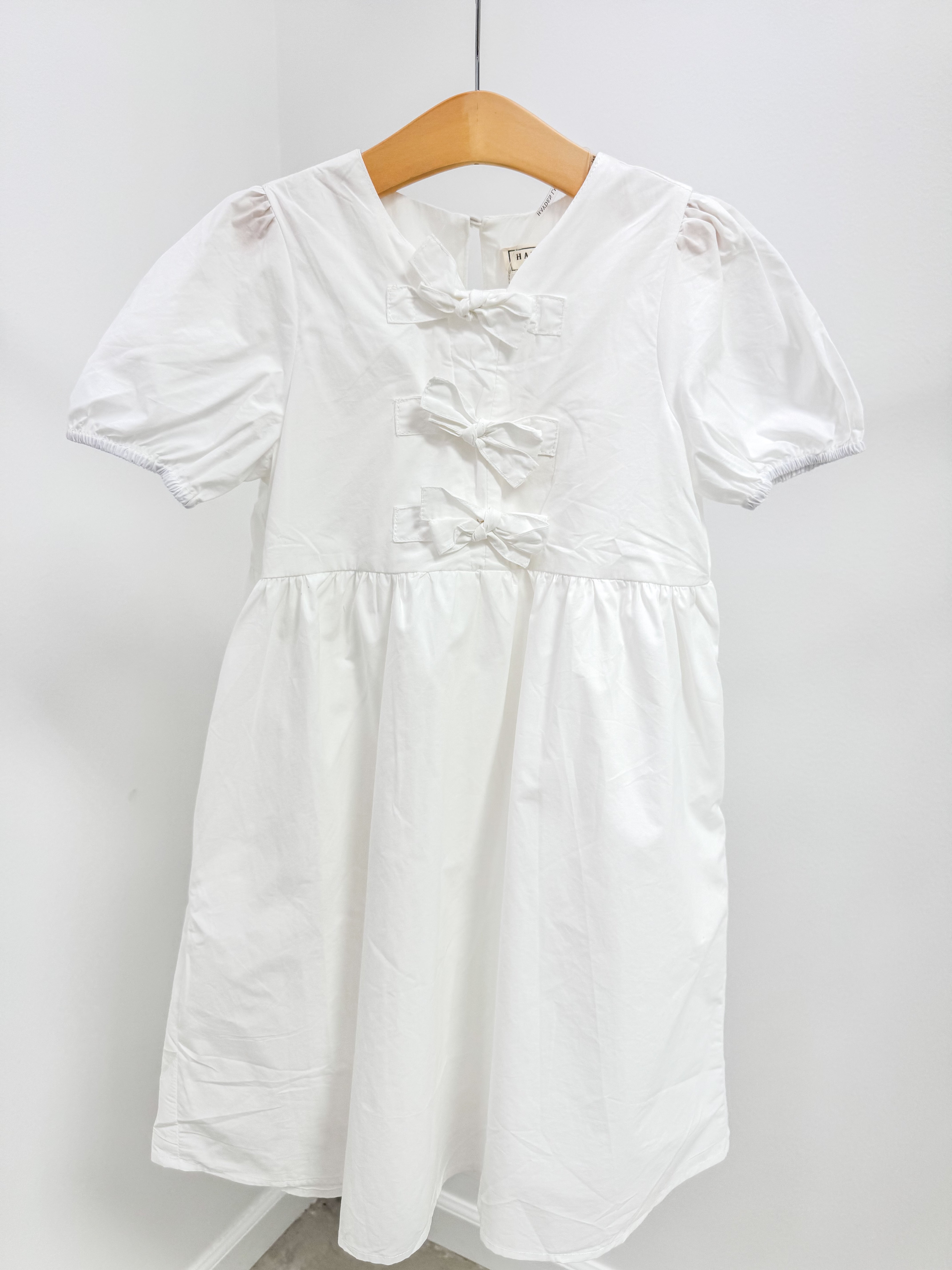 Girls Ribbon Detailed Puff Sleeve Dress