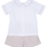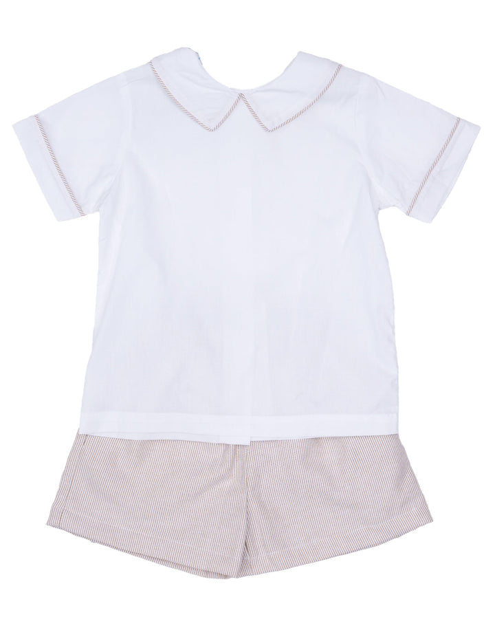 Effortless charm meets seasonal style with the John Sandbar Stripe Short Set. This sweet pleated bubble captures that perfect spring-to-summer transition in a timeless tan and white stripe. Whether you're posing for candid beach moments or layering for cooler days, our classic short set is the perfect fit!