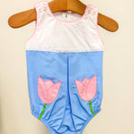 Nothing says spring like a field of tulips. This Maude collection is sure to turn heads. The combination of blue and white with touches of pink create the perfect palette to take you through spring an summer.