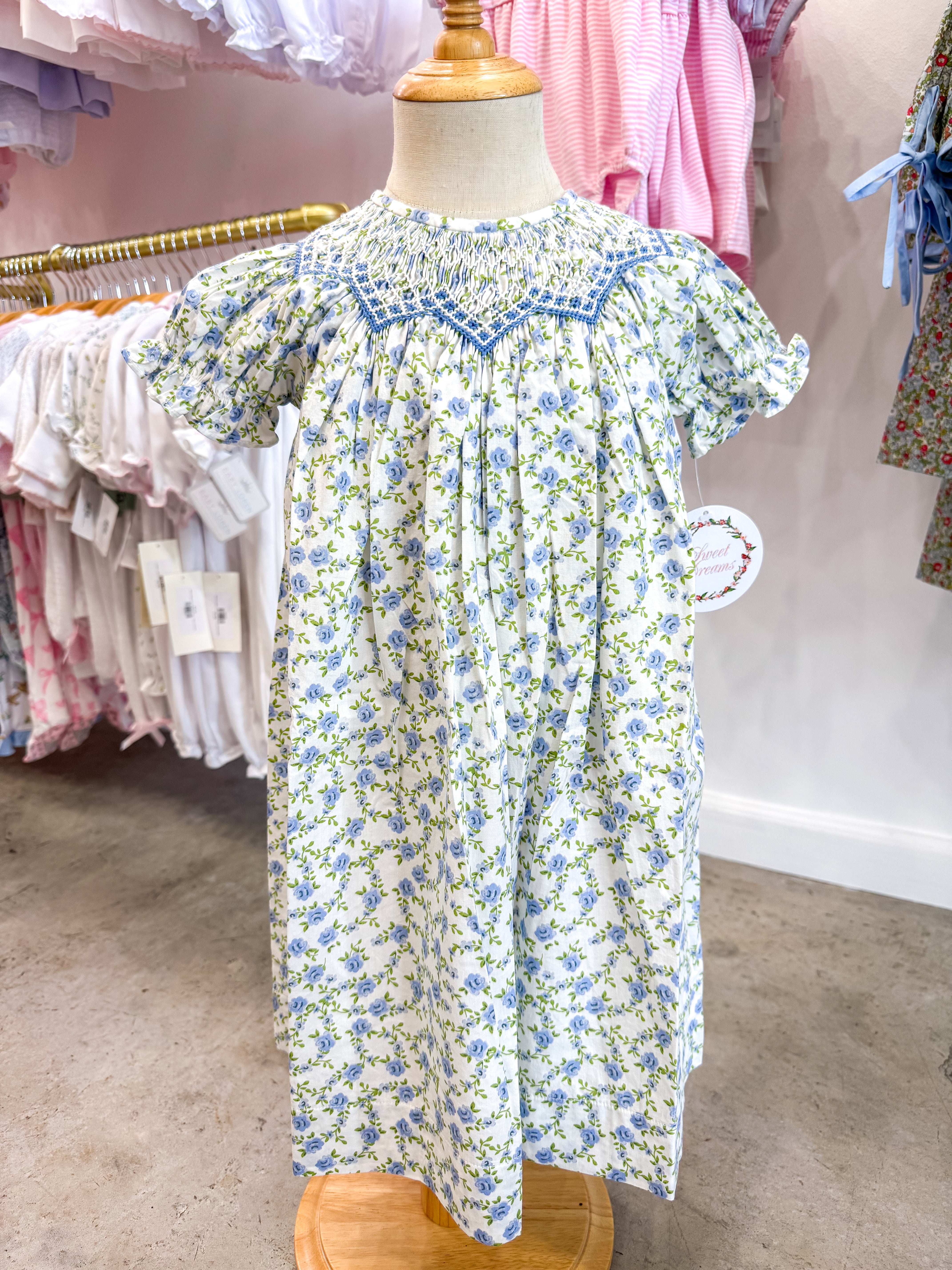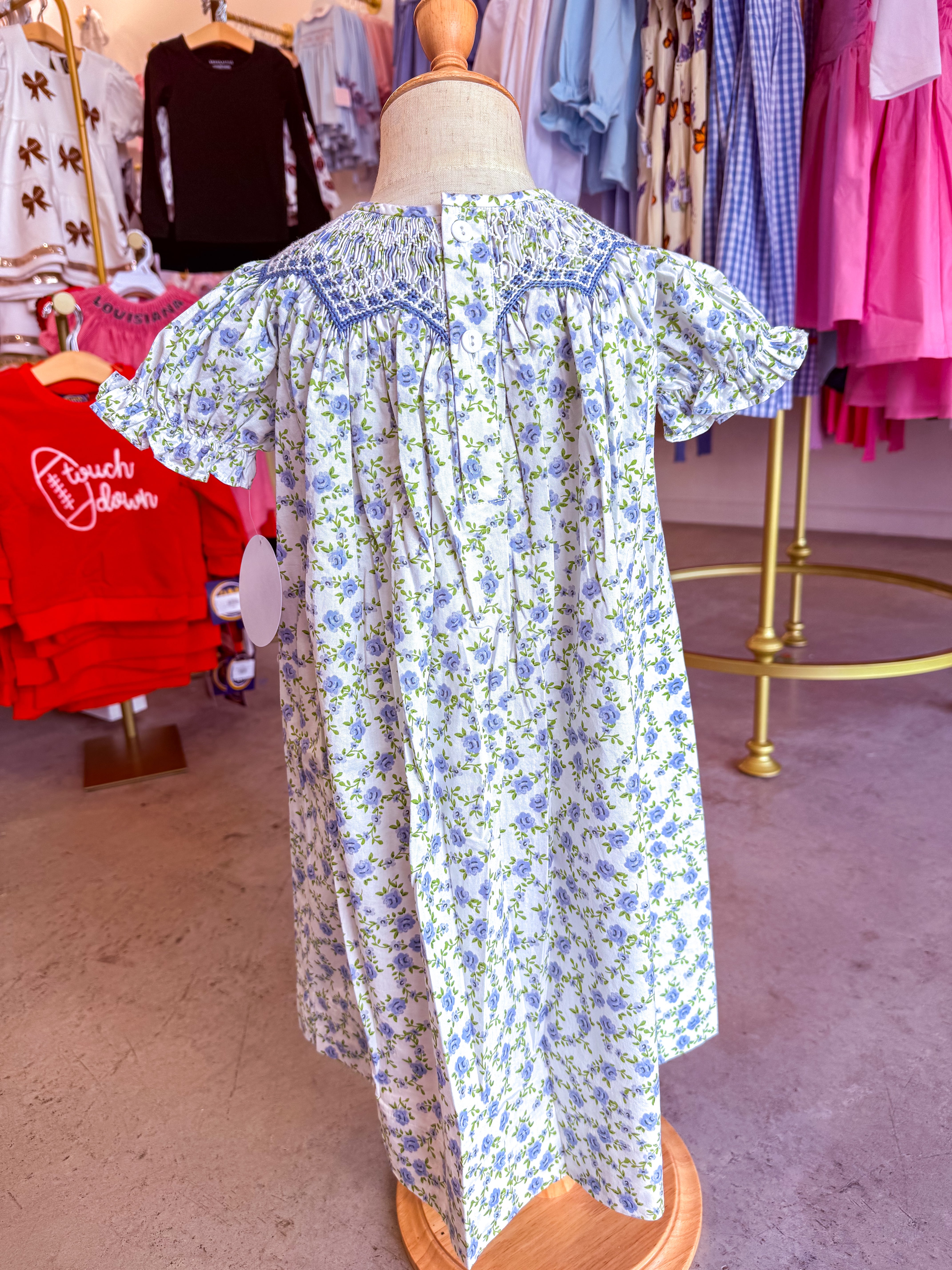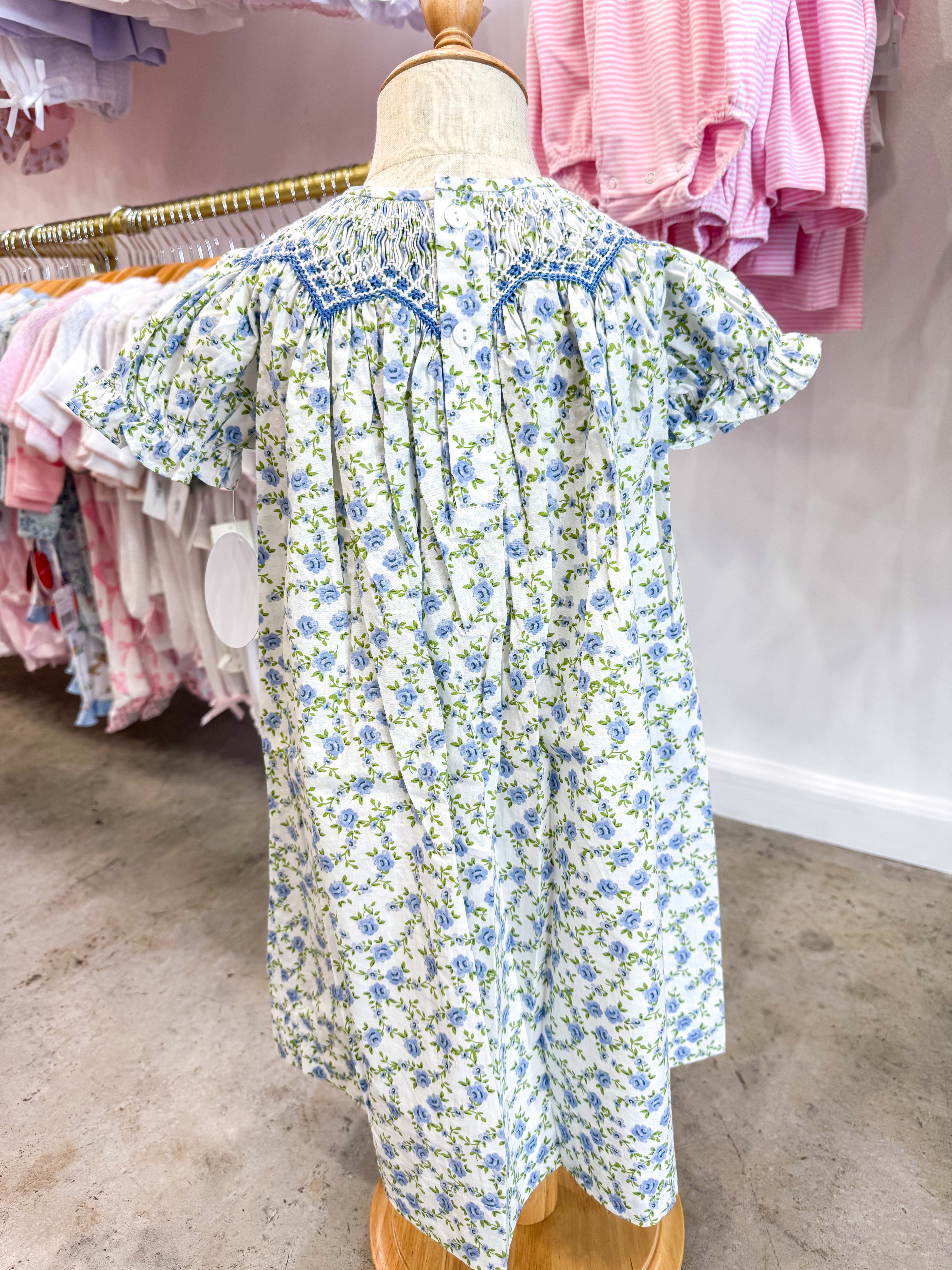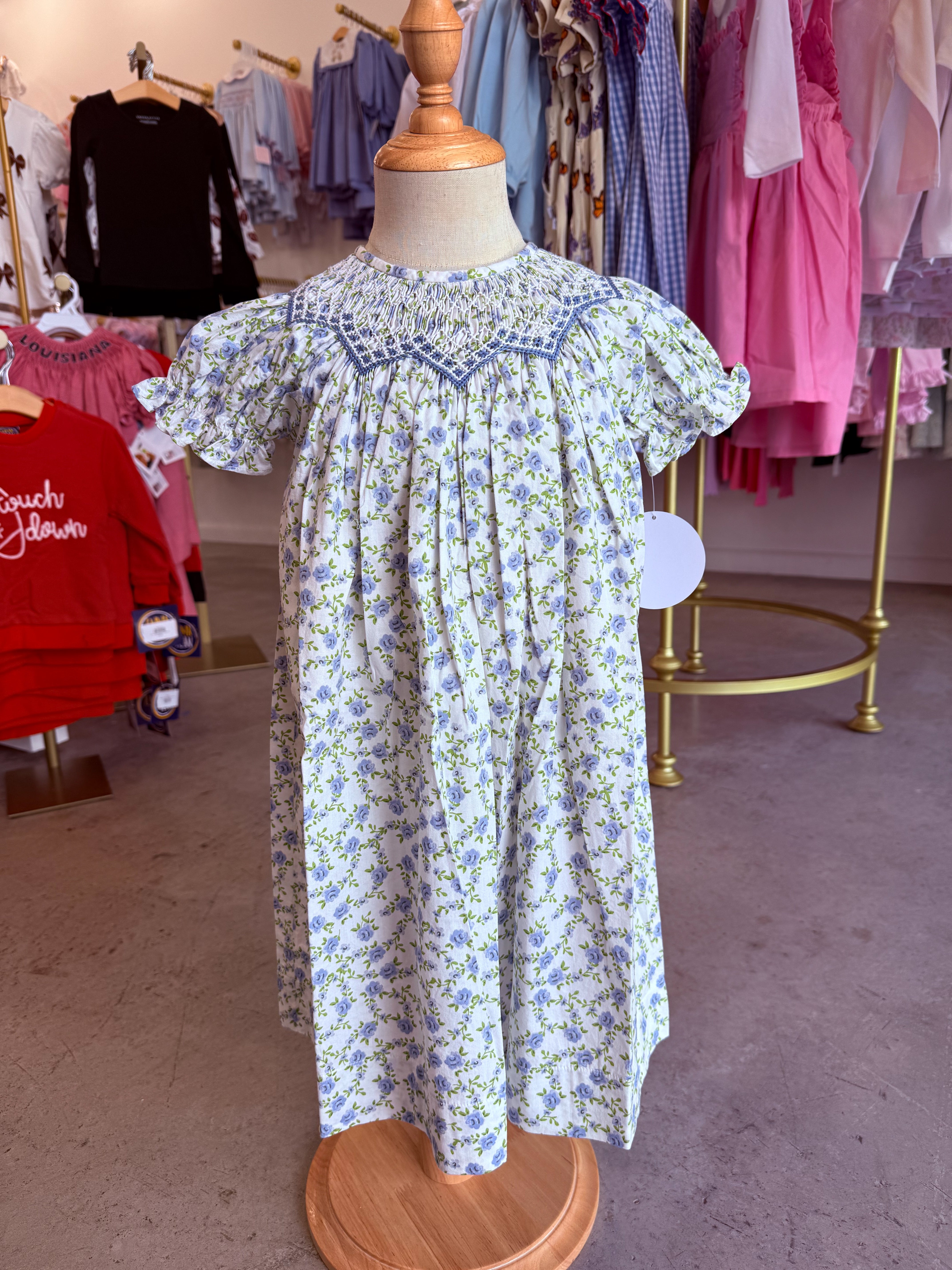 Jessica Blue Floral Smocked Dress