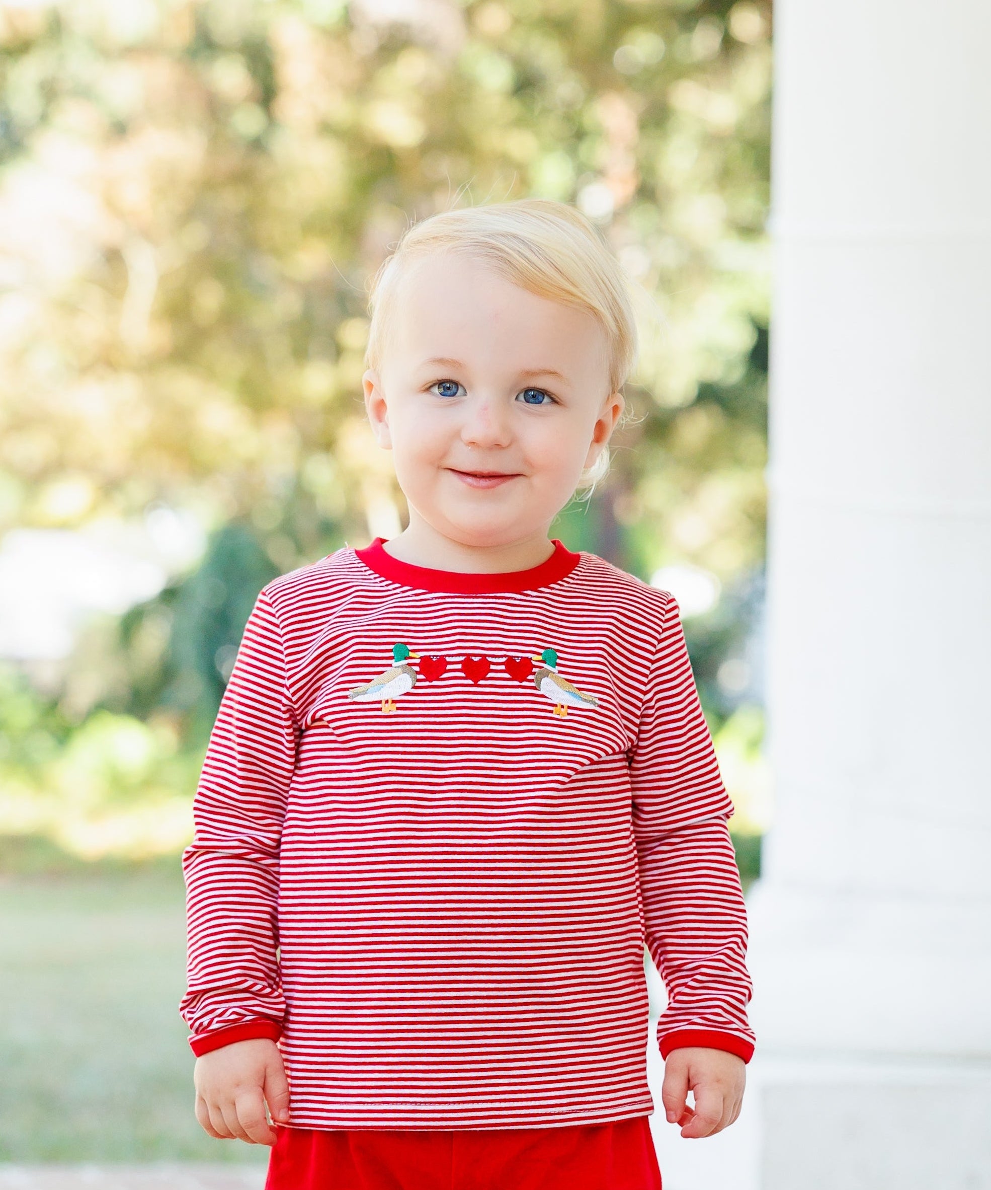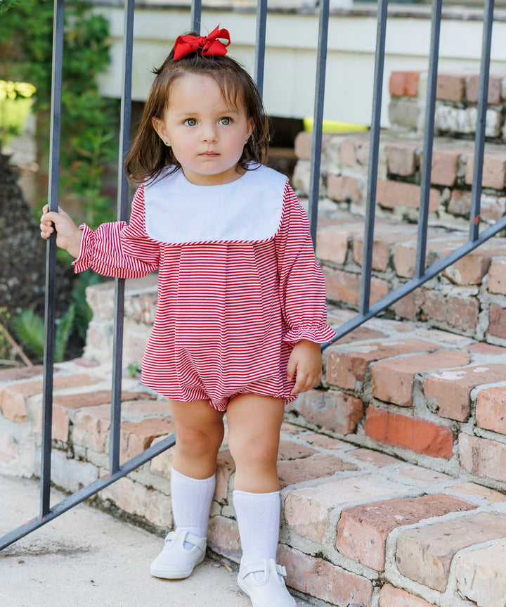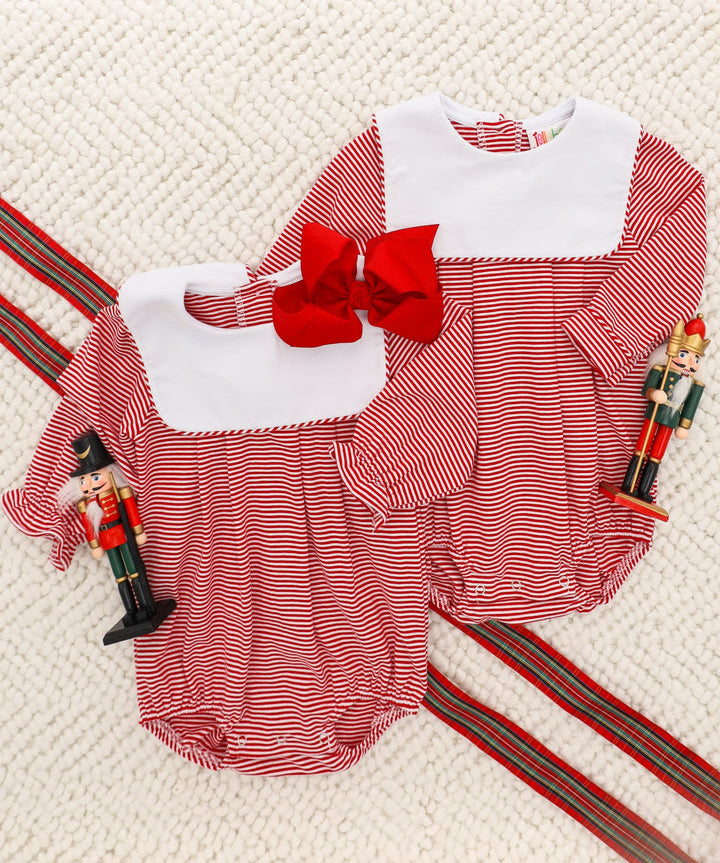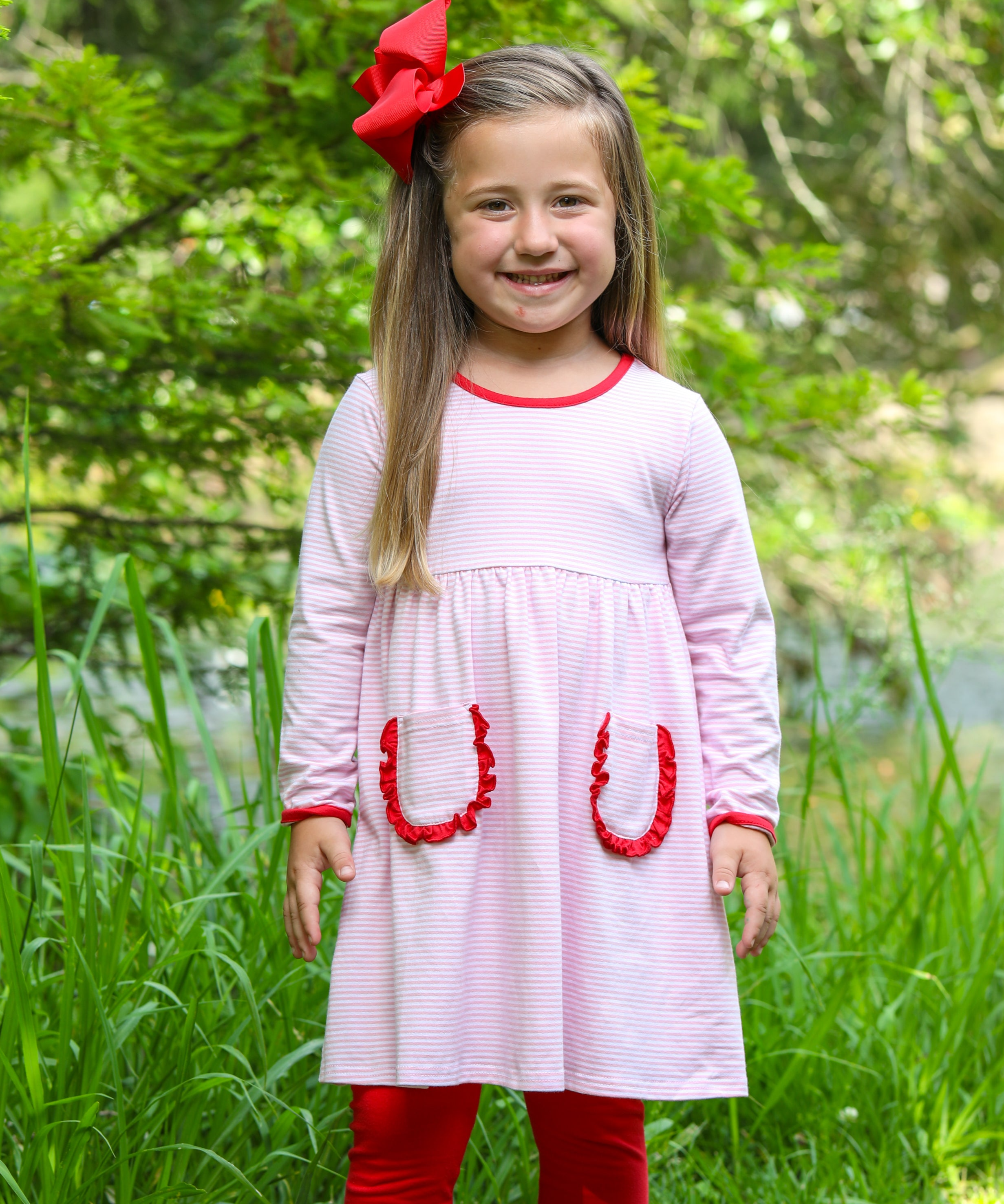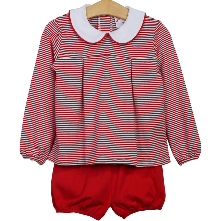 Reese Ruffle Pants Set- Pink Stripe & Red