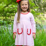 Reese Ruffle Pants Set- Pink Stripe & Red