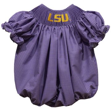 LSU Tigers Smocked Purple Gingham Short Sleeve Girls Bubble