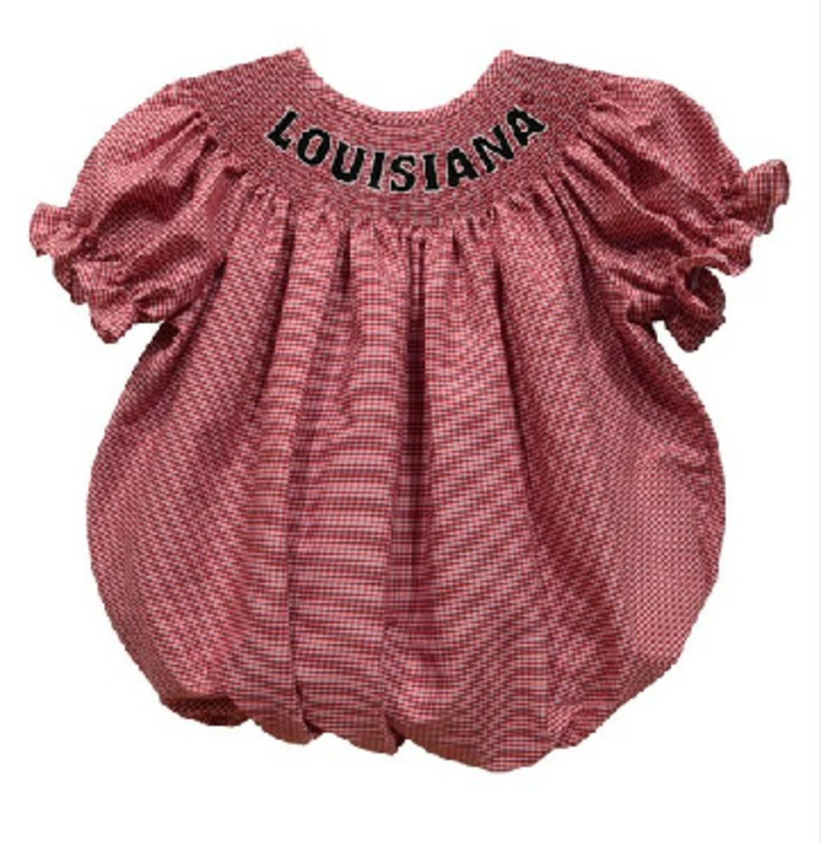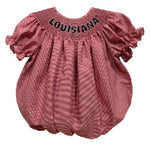 Louisiana at Lafayette Cajuns Smocked red Cardinal Gingham Short Sleeve Girls Bubble