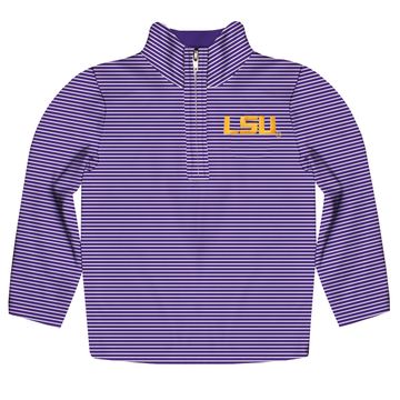 LSU Tigers Embroidered Purple Stripes Quarter Zip Pullover