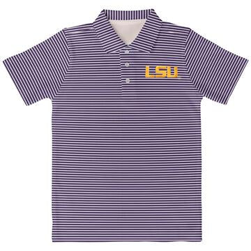 LSU Tigers Embroidered Purple Stripes Short Sleeve Polo Box Shirt