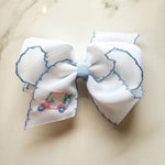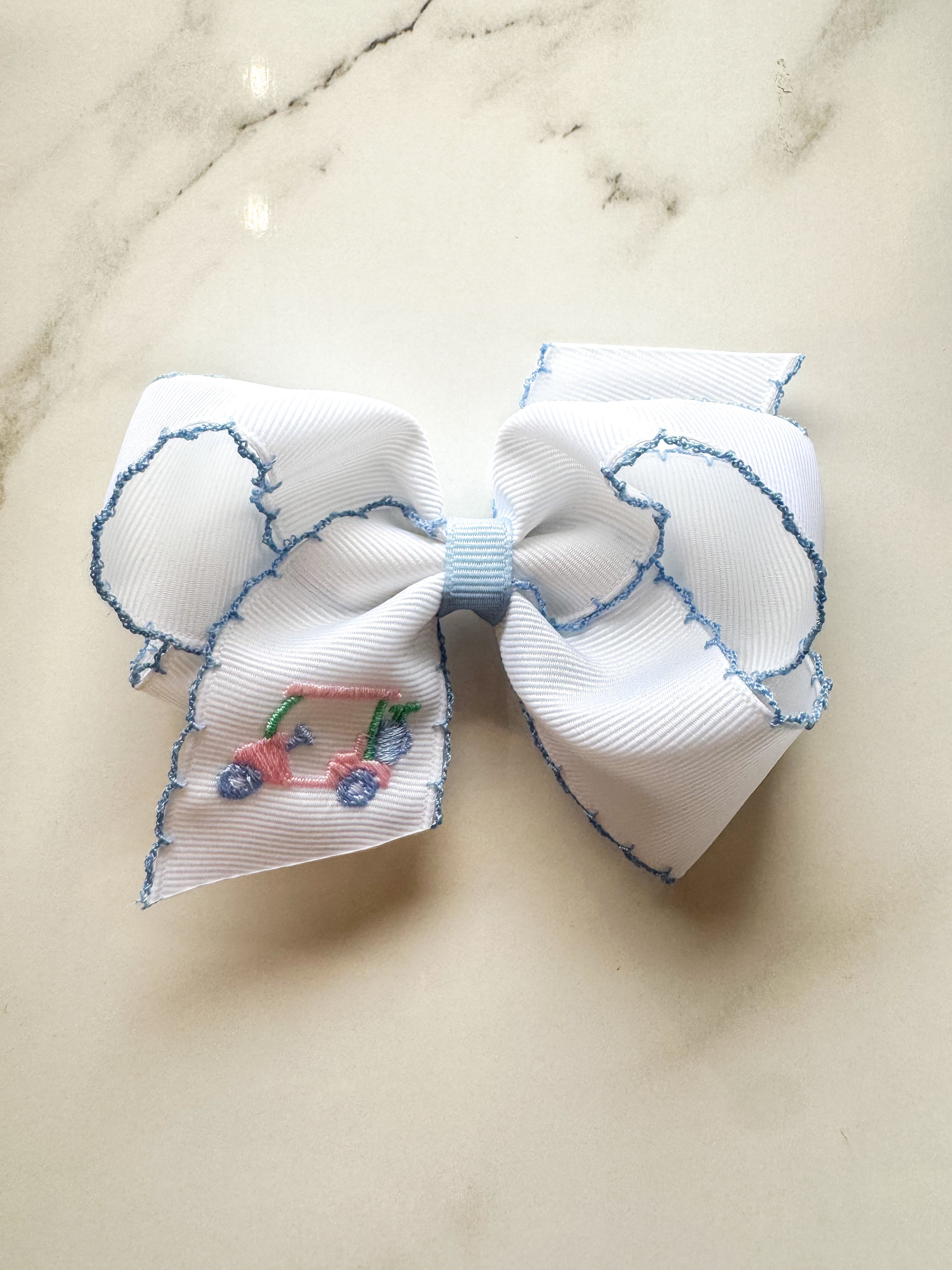 With a classic Moonstitch edge and playful Golf-themed embroidery, this Medium bow add classic Country Club style to all of her summer outfits! This bow is sure to stay in her hair all day with our patented WeeStay™ no-slip hair clip.