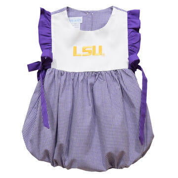 LSU Tigers Embroidered Purple Gingham Girls Bubble