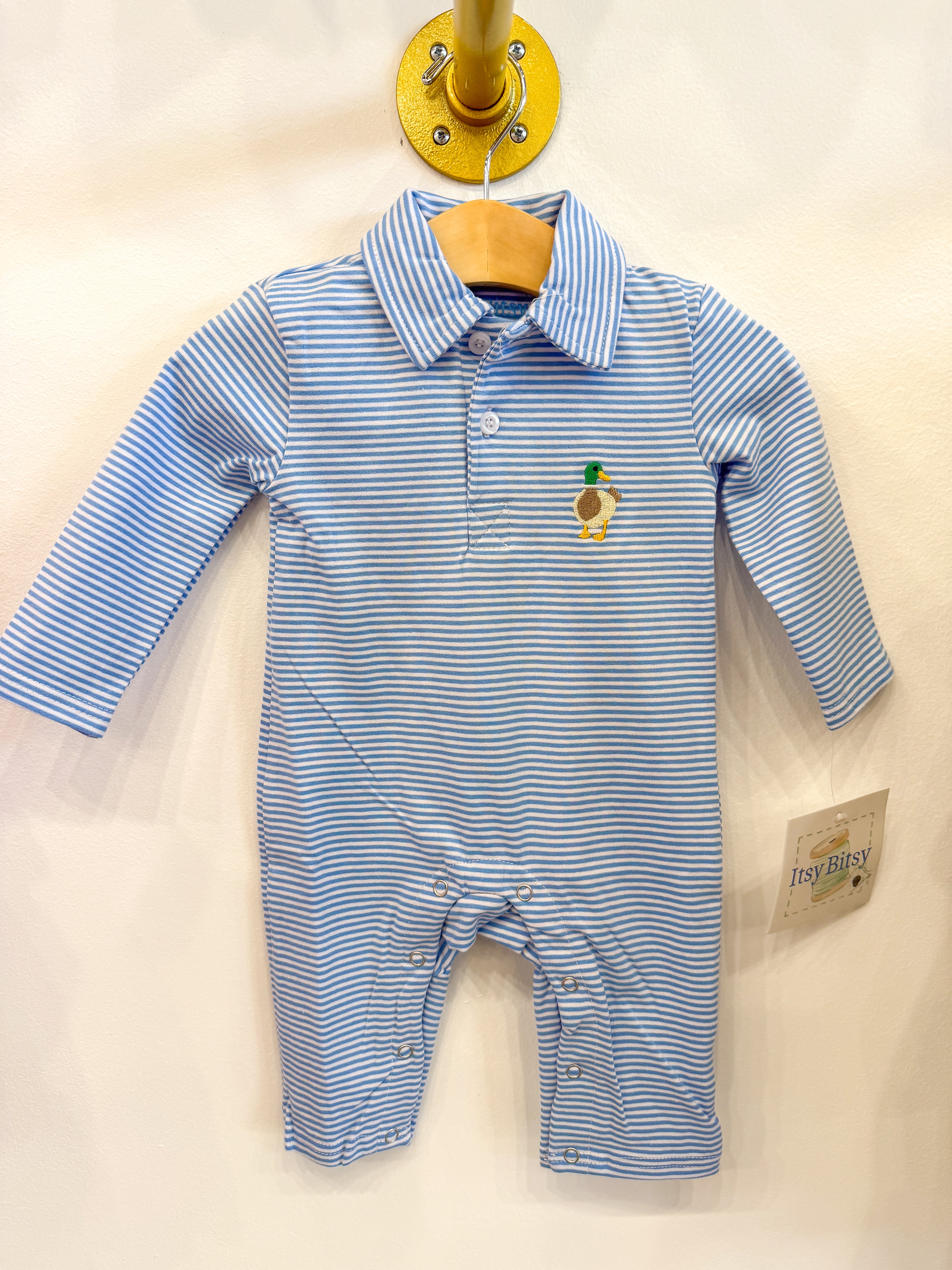 Blue Striped Mallard Polo Romper