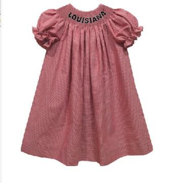 Louisiana at Lafayette Cajuns Smocked Red Cardinal Gingham Short Sleeve Bishop