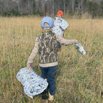 - Surface fabric is made with 100% polyester microfiber with our mallard sky printed pattern.