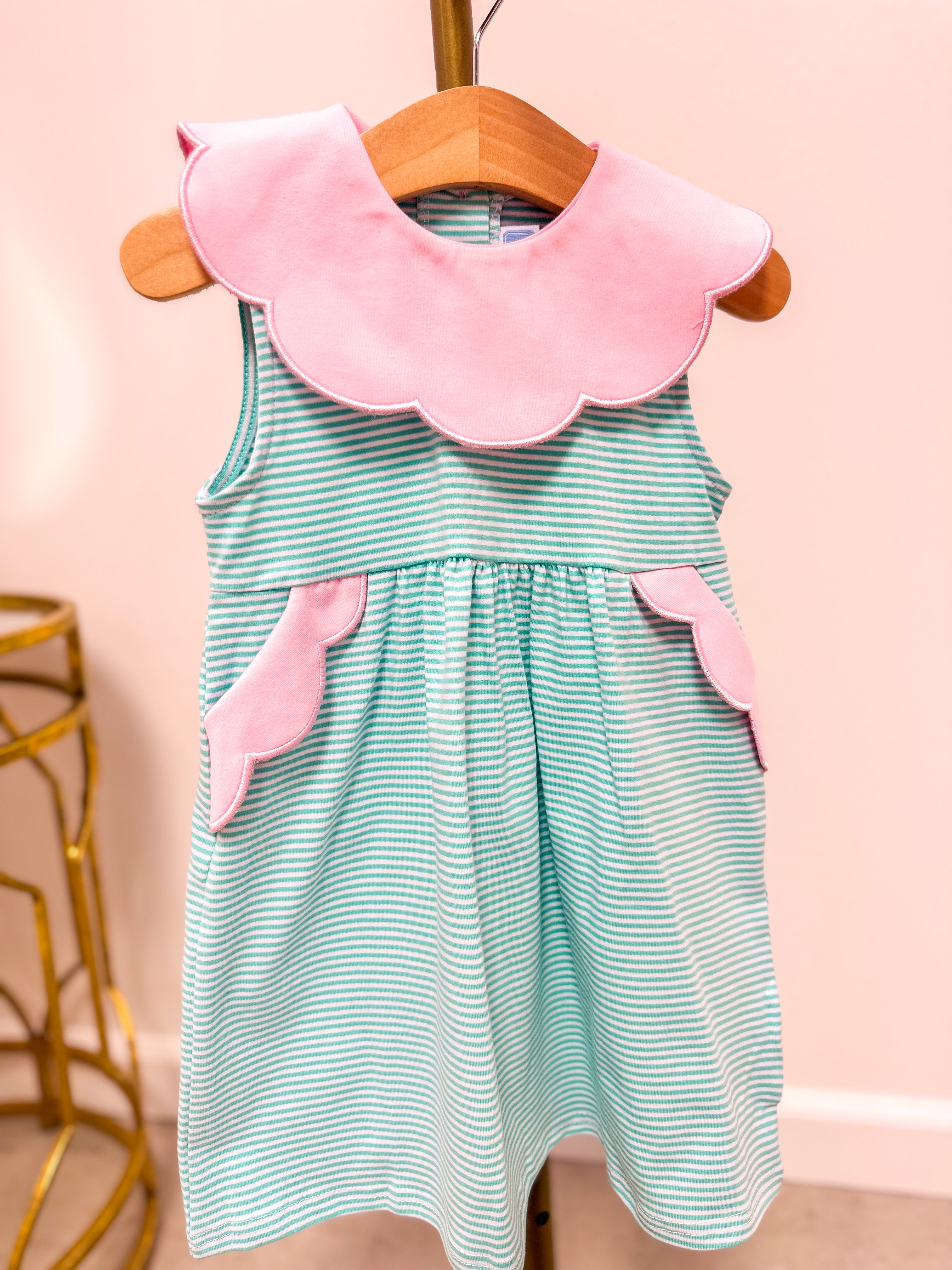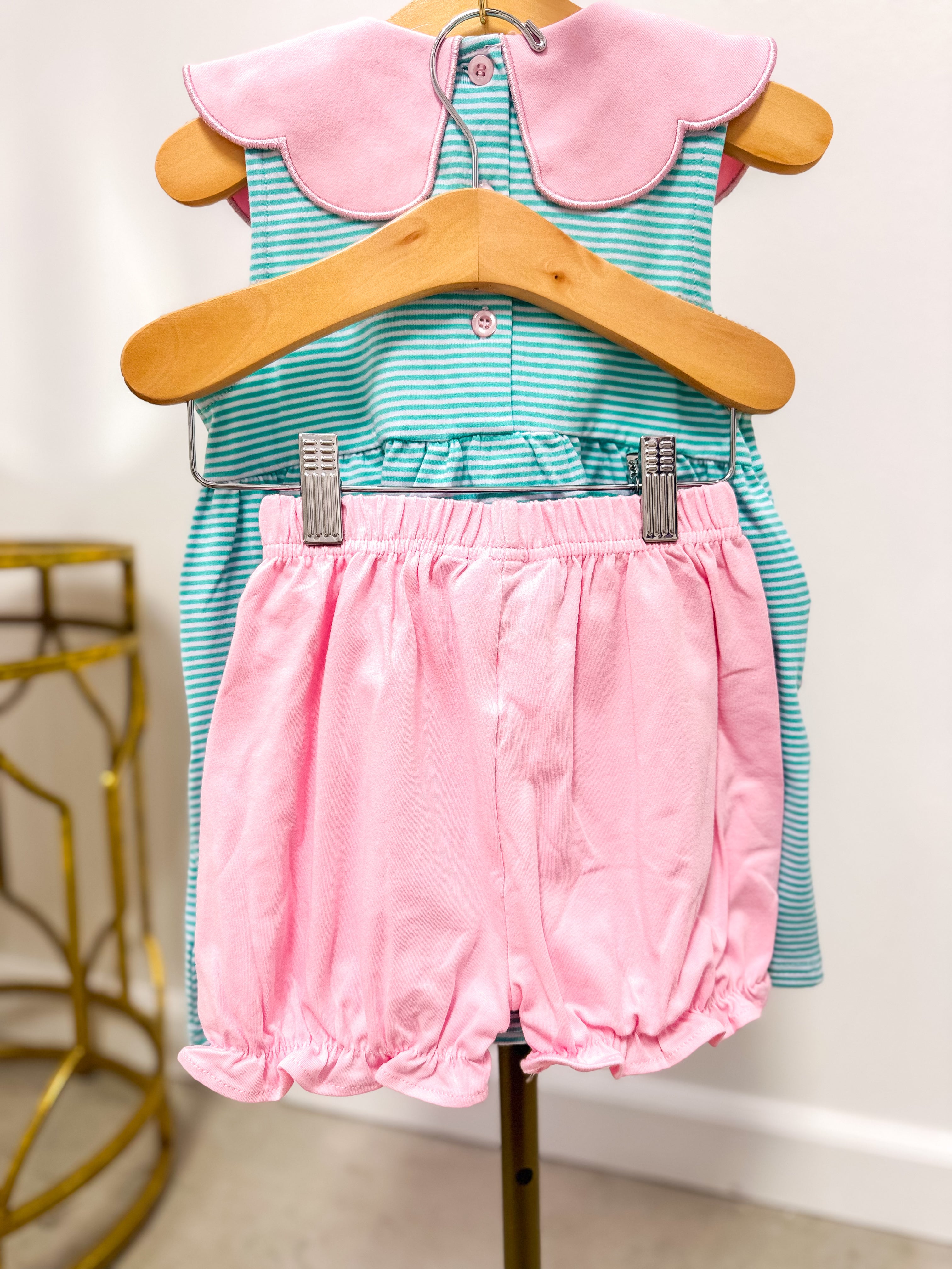 Penelope Bloomer Set- Mint Stripe/Light Pink