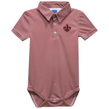 Louisiana at Lafayette Cajuns Embroidered Red Pencil Stripe Knit Polo Bodysuit